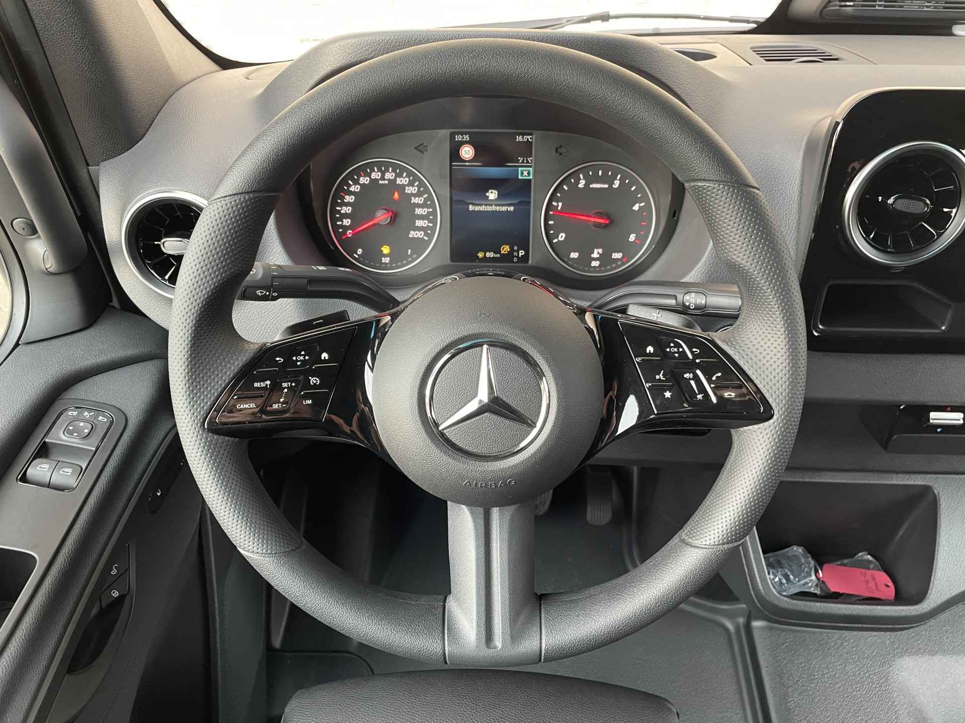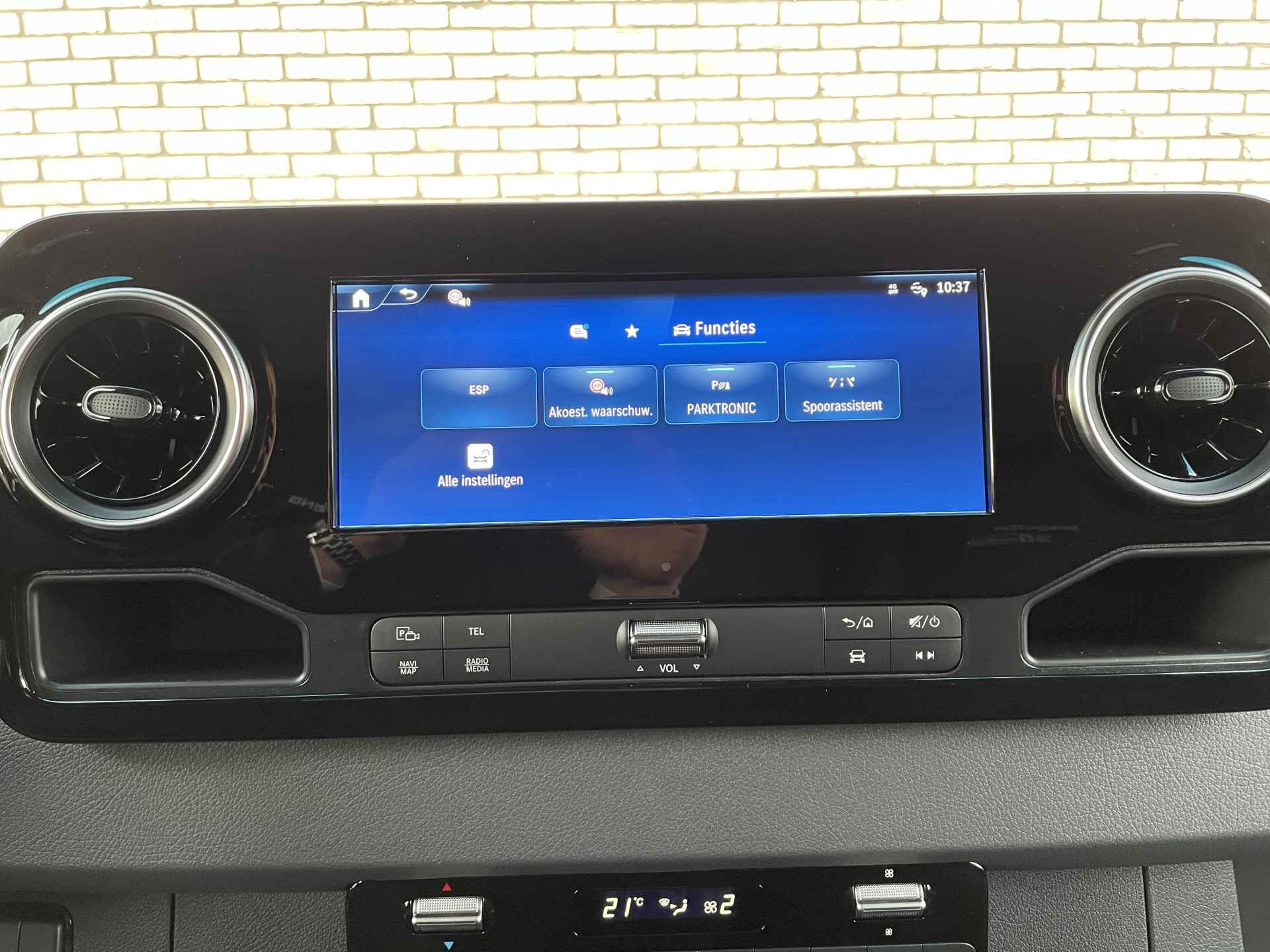 Incl. 4 onderhoudsbeurten, garantie t/m 12-2029 Lederen bekleding 18" Wielen AMG GT Grille Frontspoiler Sidesteps 9538 - Camper wit CM0 - Bumper in carrosseriekleur D03 - Hoog dak D13 - Dakreling voor dakdragersystemen E1B - Opbergvak voor smartphones met Wireless Charging E3J - Voorbereiding voor schakelpaneel E43 - Aanhangwagenstekkerdoos 13-polig E4S - Smartphone integratie pakket ES5 - Oplaadpakket dashboard FJ5 - Deksel voor opbergvak links en rechts FY1 - Anti-diefstalinstall. met int.det. (SCM Klasse 3) G43 - Automatische transmissie 9G-TRONIC H15 - Verwarming voor bijrijdersstoel JB7 - Parkeerpakket met achteruitrijcamera L13 - Mistlampen met afslagverlichting L22 - Achterlichten met gedeeltelijke led-techniek LB9 - Uitstapverlichting LG7 - High-performance LED-koplampen QA3 - Voorbereiding voor 3.500 kg aanhangwagengewicht R65 - Reservewielhouder onder het chassiseind R87 - Reservewiel RD8 - Wieldoppen 'luxe' S22 - Armleuning voor bestuurdersstoel S25 - Armleuning voor bijrijdersstoel S28 - Armleuning, bestuurders- en bijrijdersdeur SB1 - Comfortbestuurdersstoel SB2 - Comfortbijrijdersstoel SK0 - Comforthoofdsteun voor de bestuurder T50 - Elektrische sluithulp schuifdeur rechts T75 - Handgreep voorportieren V07 - Bekleding achterwand VA2 - Laadruimtebekleding tot het dak (hout) W5F - Extra vergrendeling achterdeuren 90 graden E1E - Navigatie FJ1 - Deksel voor opbergvak dashboard H16 - Verwarming voor bestuurdersstoel JA9 - Verkeersbordenassistent