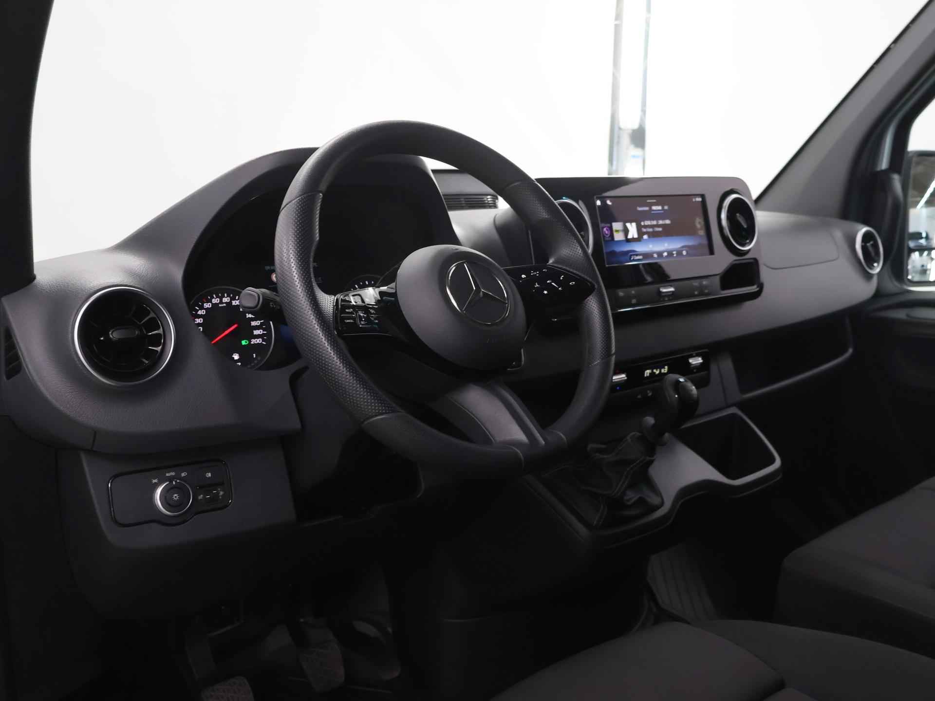 Dynamische styling, zorgvuldig afgewerkt met fraaie materialen en ontworpen met oog voor detail. De Mercedes-Benz Sprinter is van binnen en van buiten een toonbeeld van Duits design. Deze auto uit 2024 heeft 25443 kilometer op de teller staan. Deze diesel heeft een handgeschakelde versnellingsbak. Een goede zithouding is wel zo prettig. Daarom is deze auto voorzien van ergonomisch comfort stoelen. Een prettige maar ook veilige extra is de schuifdeur voor passagiers. Ruim instappen, geen openslaande portieren die voor ongelukken zorgen... Een riante optie! Overzichtelijk en veilig parkeren met de achteruitrijcamera. Overal en altijd. Met uw smartphone maakt u overal contact met de auto. Remote services geven direct inzicht in uiteenlopende functies en zijn op afstand te activeren. En het wordt nog mooier: deze auto heeft een ingebouwde WIFI-hotspot, zodat iedereen online kan. Knoppen voor audio-aanpassingen zijn onder direct handbereik met de audiobediening op het stuur. Met de DAB-ontvanger heeft u keuze uit talloze digitale radiozenders met de allerhoogste geluidskwaliteit. En deze auto heeft ook WIFI-hotspot, regensensor, cruise control, airconditioning, buitentemperatuurmeter en verstelbaar stuur als standaard uitrusting. Geavanceerde systemen kunnen tijdens de rit bepaalde taken van u overnemen. Zo kijken er als het ware steeds extra ogen met u mee, zodat u tijdig kunt reageren op noodsituaties. Het Lane-keeping systeem doet precies wat nodig is: waarschuwen en corrigeren bij onbedoelde overschrijding van de rijstrooklijnen. Een belangrijk veiligheidssysteem in deze auto is de vermoeidheidsherkenning, die u een duidelijk signaal geeft wanneer u achter het stuur in slaap dreigt te vallen. In deze Mercedes-Benz vinden we verder een dodehoekdetectie, hill hold functie en autonoom remsysteem. Neem contact op voor een afspraak en laat een proefrit het bewijs leveren!