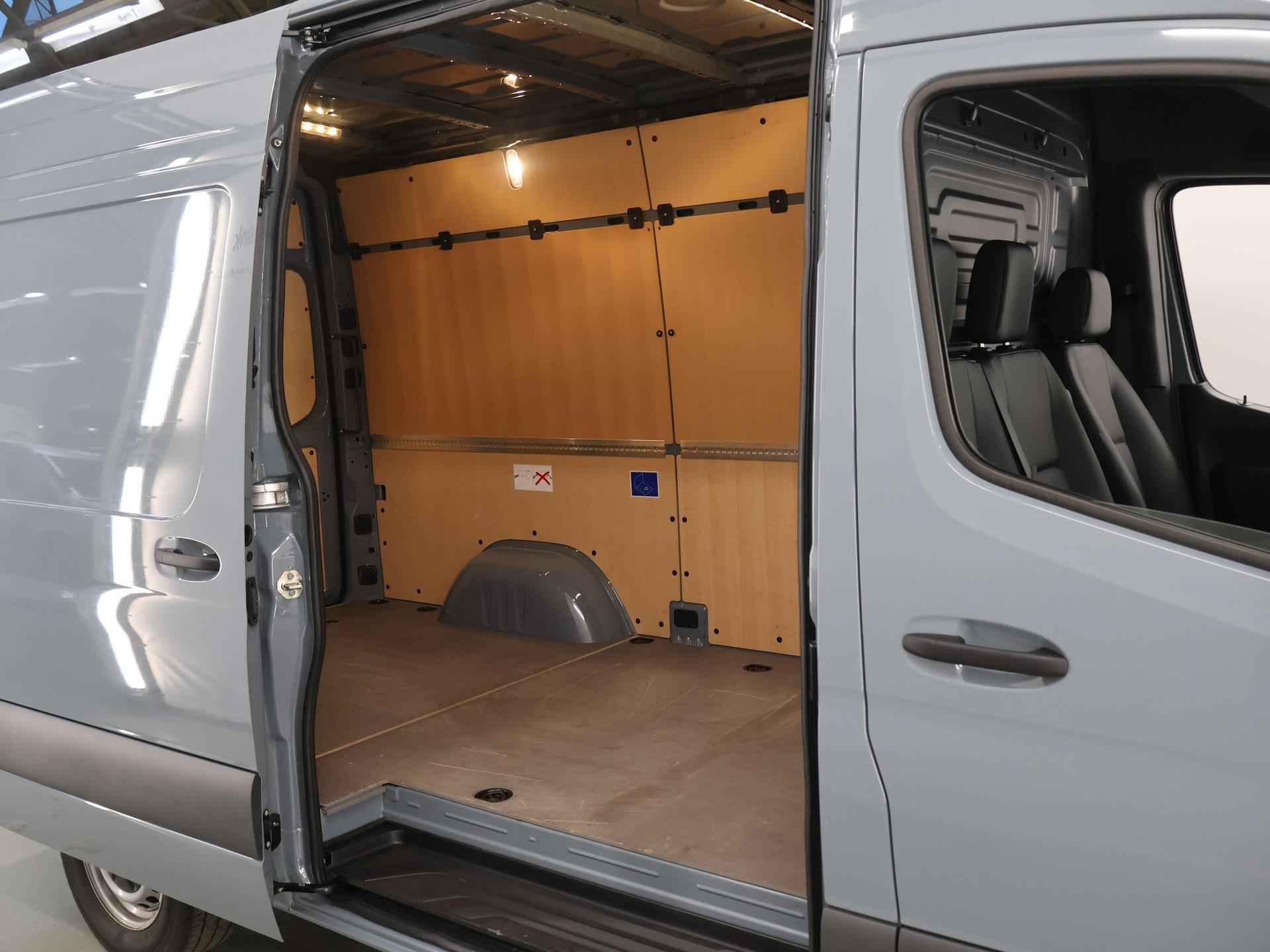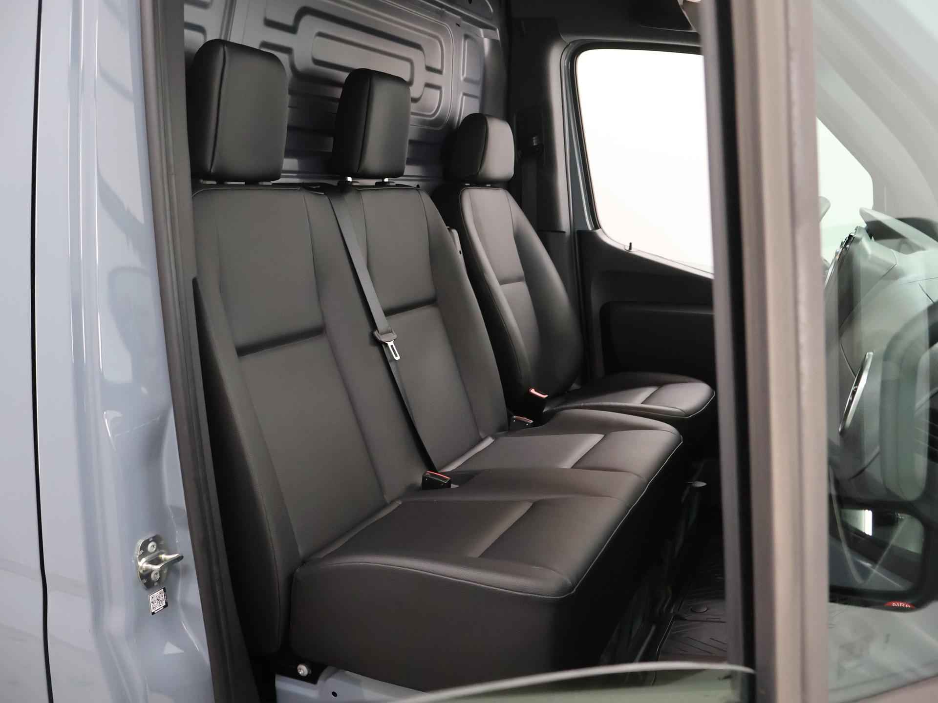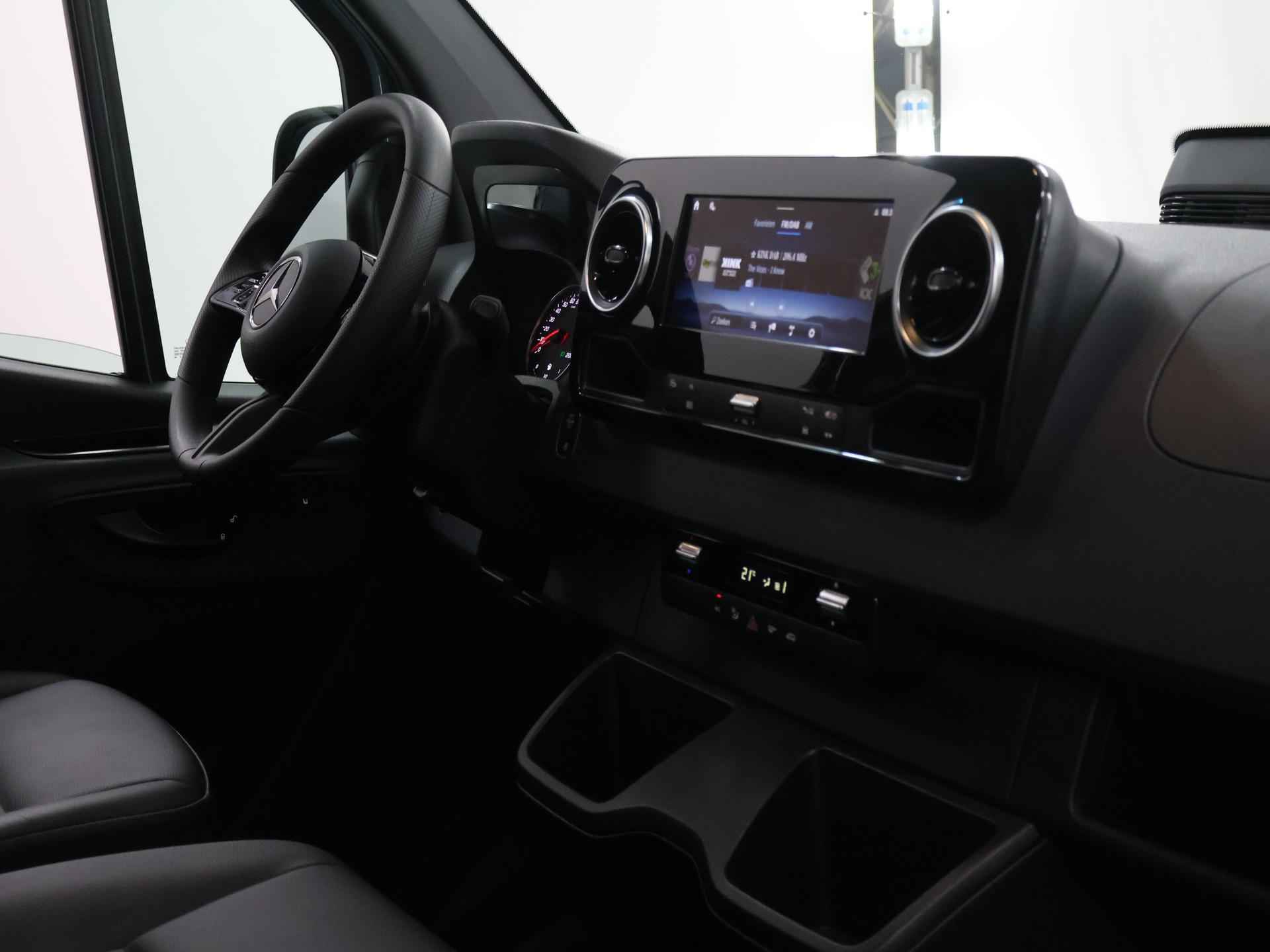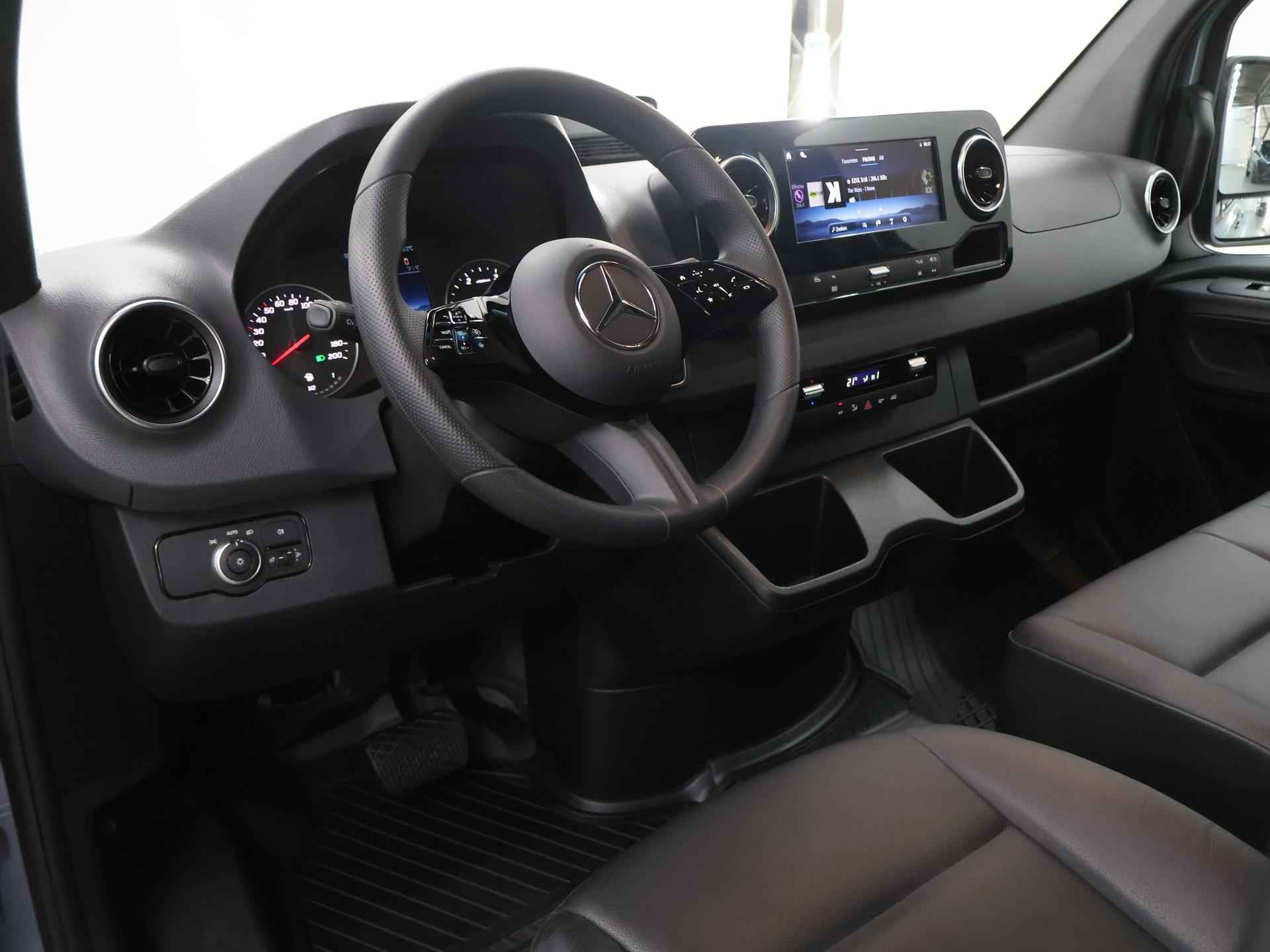 U rijdt gemakkelijk, comfortabel en zonder zorgen met deze Mercedes-Benz Sprinter. Het is een auto van het bouwjaar 2024. In deze auto vindt u een dieselmotor en een automatische transmissie. De schuifdeur bij het passagiersdeel is ook een voordeel: geen uitzwaaiende portieren en een royale instap. Boem is ho? Dat is verleden tijd. De achteruitrijcamera laat precies zien hoeveel ruimte u achter nog heeft! De speciale app verbindt met Connected Services, die de status van vitale functies bijhoudt en waarschuwt als u bijvoorbeeld moet tanken, de bandenspanning moet controleren of olie moet bijvullen. Online? Draadloos? Allemaal mogelijk. Het audiosysteem heeft smartphone connectiviteit en u kunt zelfs online via de eigen WiFi aan boord. Achter het stuur van deze Mercedes-Benz bent u niet alleen. De auto kijkt als het ware met u mee tijdens de rit. De regensensor schakelt de ruitenwissers in als het nodig is en de automatisch inschakelbare verlichting doet de lichten voor u aan. Cruise control verlaagt de brandstofkosten en verhoogt het rijcomfort. Met WIFI-hotspot, DAB ontvangst, airconditioning, buitentemperatuurmeter en verstelbaar stuur is deze Mercedes-Benz helemaal compleet. De Mercedes-Benz Sprinter is uw trouwe partner onderweg, want hij houdt continu voor u de situatie op en om de weg in de gaten. Volautomatische veiligheidssystemen kunnen daarbij ingrijpen om u voor gevaarlijke situaties te behoeden. Met het Lane-keeping systeem komt u nooit per ongeluk buiten de rijstrook. Het laatste wat u wilt is dat u achter het stuur indommelt. Om dat te voorkomen is deze auto uitgerust met vermoeidheidsherkenning. Ook helpen het dodehoekdetectie, hill hold functie en autonoom remsysteem, uw rit tot een veilige rit te maken. We kunnen ons voorstellen dat u een proefrit wilt maken met deze Mercedes-Benz. Belt u ons snel?