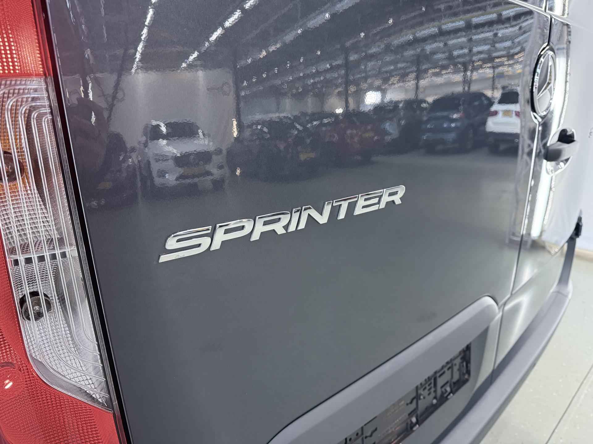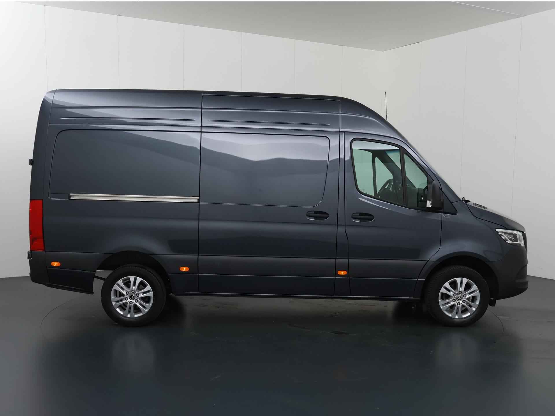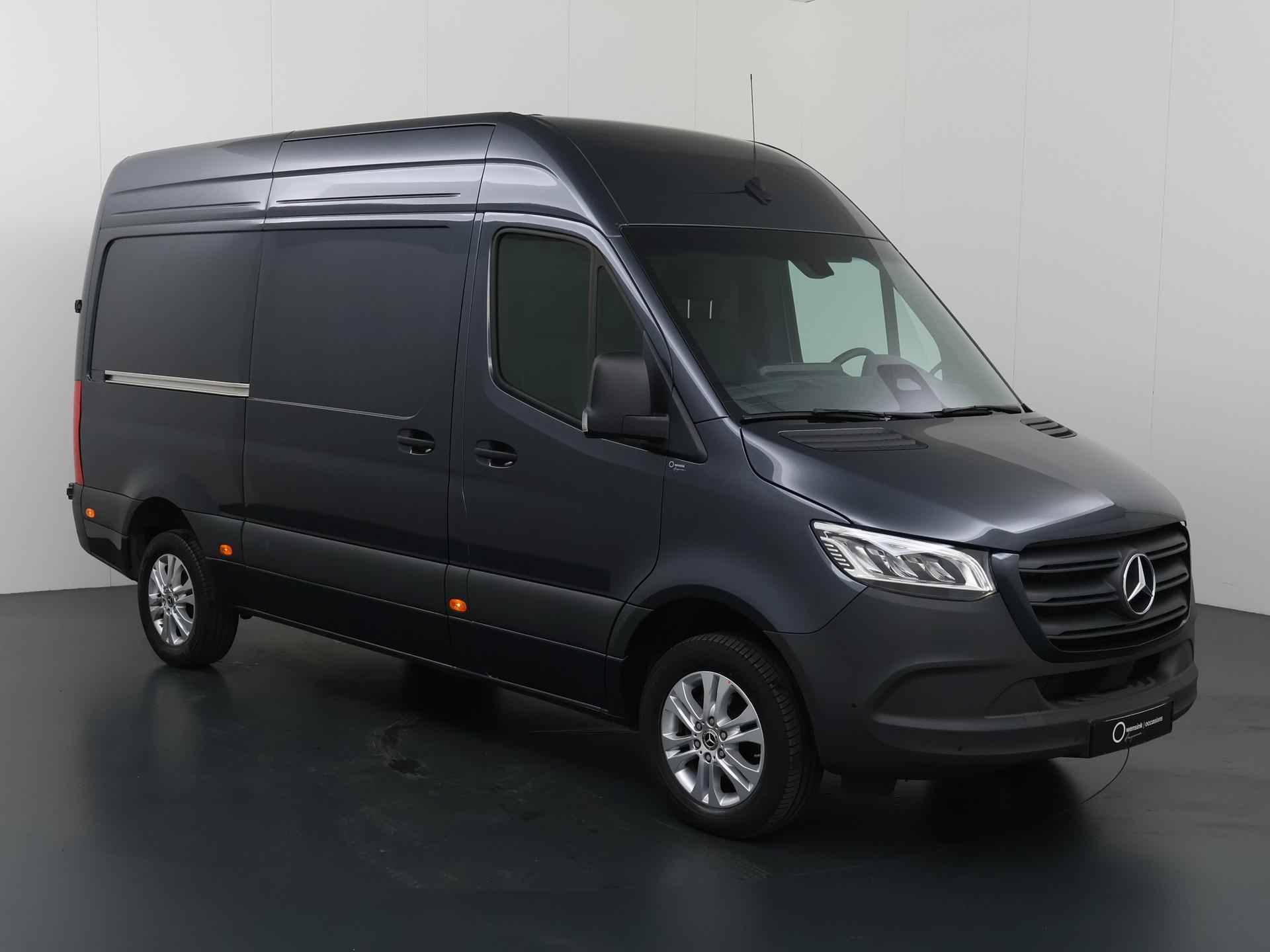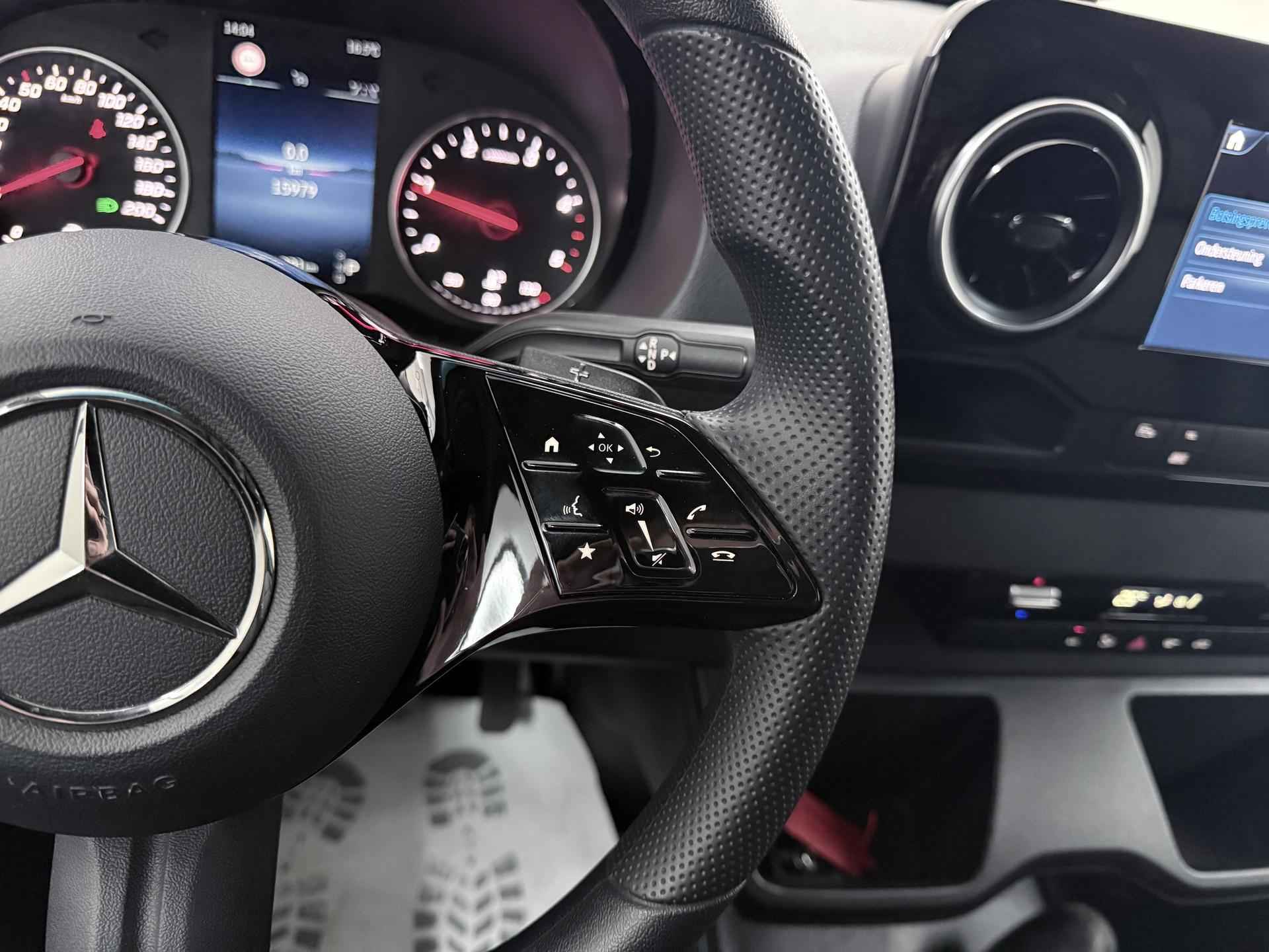 Robuust, luxe en hoogstaande technologie samengebracht in deze Mercedes-Benz Sprinter, een weerspiegeling van de excellente kwaliteit van Duitse automerken. De auto heeft een opmerkelijk lage kilometerstand van slechts 15980 De aandrijving van deze Mercedes-Benz wordt verzorgd door een viercilinder dieselmotor en een automatische transmissie. 's Winters op pad gaan kan een behoorlijke uitdaging zijn. Daarom is deze Mercedes-Benz Sprinter voorzien van weldadige verwarmbare voorstoelen. Een goede zithouding is wel zo prettig. Daarom is deze auto voorzien van ergonomisch comfort stoelen. De schuifdeur zorgt voor een grote deuropening waardoor niet alleen in- en uitstappen gemakkelijker wordt, maar ook bijvoorbeeld het plaatsen van bagage of een kinderzitje. U wordt in deze auto ook getrakteerd op 17 inch lichtmetalen velgen, warmtewerend glas en verwarmde ruitensproeiers. Ook achter de auto geen verrassingen bij het inparkeren. Daarvoor zorgt de achteruitrijcamera. Handig en veilig: Connected Services. Alle vitale functies en data van de auto checkt u via de app op uw smartphone. De kans op een kop-staart botsing wordt sterk gereduceerd door het systeem van achteropkomend verkeer waarschuwing. Da's makkelijk: dankzij de ingebouwde WIFI-hotspot kan iedereen onderweg probleemloos online. Terwijl u stuurt, kunt u het audiosysteem bedienen met de knoppen onder uw vingertoppen. Natuurlijk behoren WIFI-hotspot, DAB ontvangst, regensensor, cruise control, airconditioning en buitentemperatuurmeter ook tot de uitrusting van deze complete auto. De nieuwste veiligheidssystemen komen in deze Mercedes-Benz Sprinter samen. Onbedoeld buiten de rijstrook raken wordt voorkomen door het Lane-keeping systeem. Het laatste wat u wilt is dat u achter het stuur indommelt. Om dat te voorkomen is deze auto uitgerust met vermoeidheidsherkenning. Ook helpen het dodehoekdetectie, hill hold functie en autonoom remsysteem, uw rit tot een veilige rit te maken. Heeft u interesse? Laat het ons dan zo snel mogelijk weten, dan kunnen we deze Mercedes-Benz voor een proefrit reserveren.