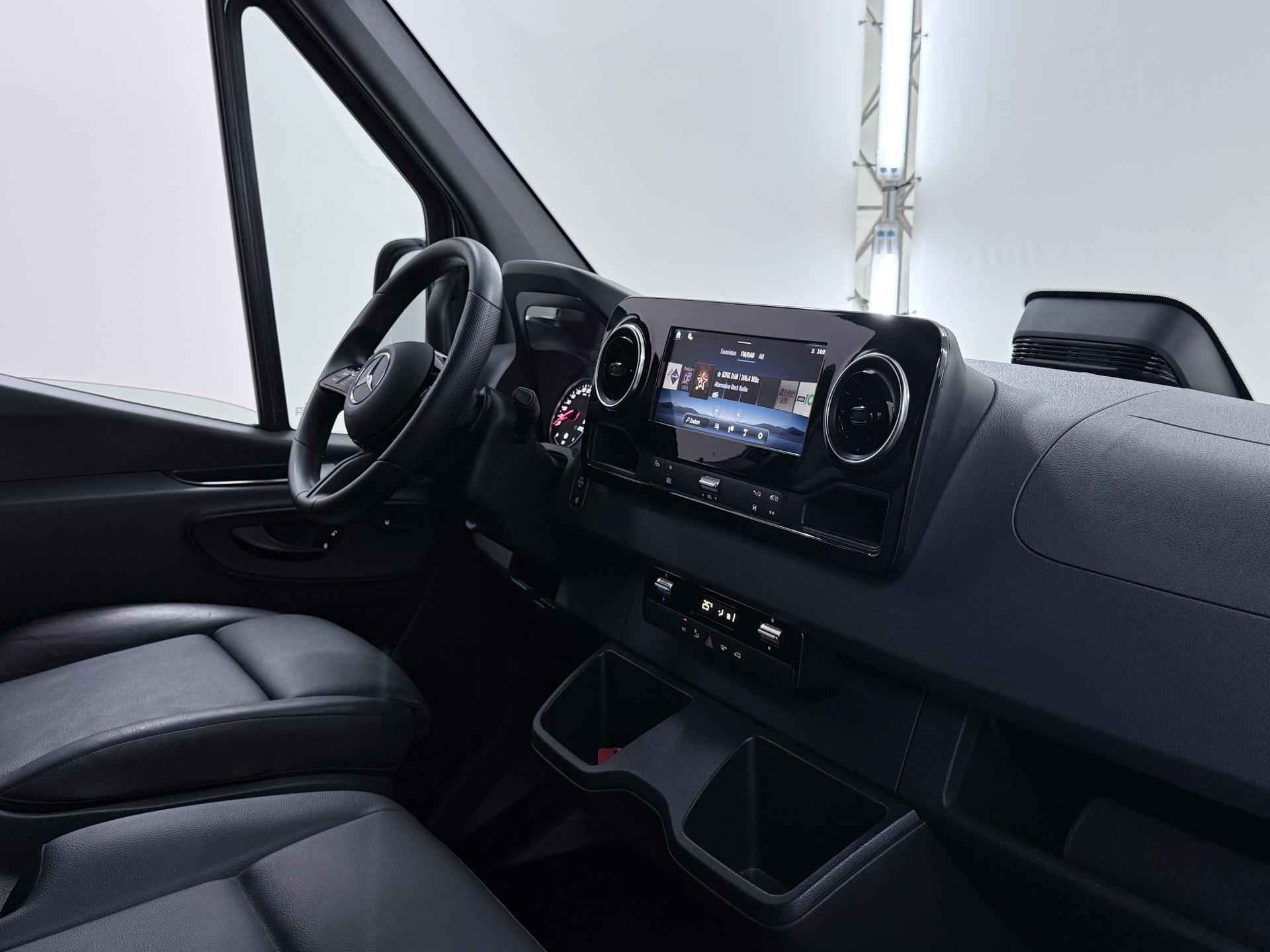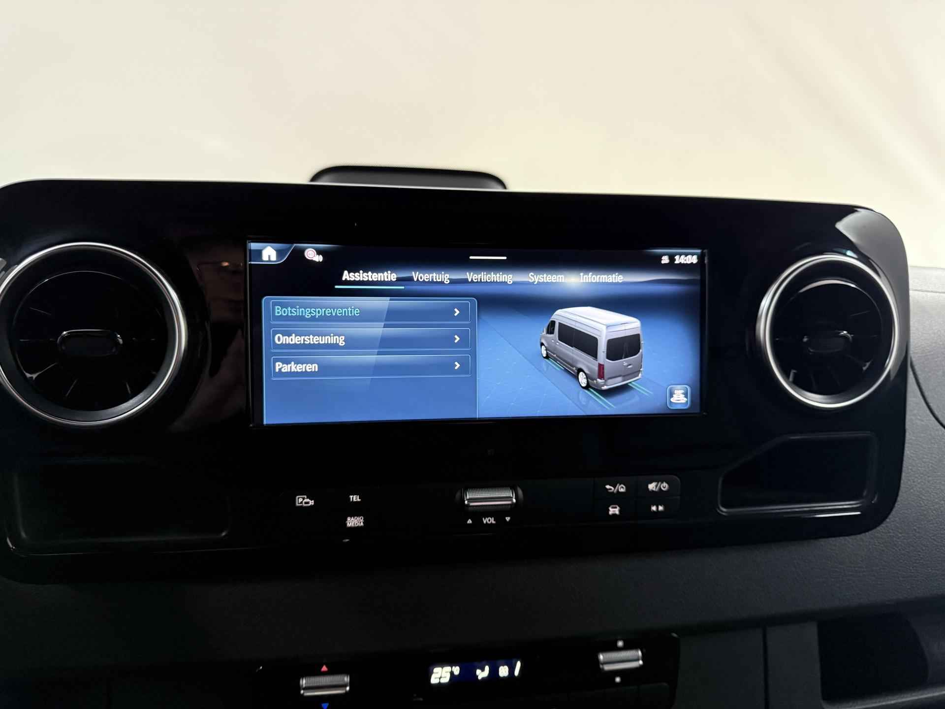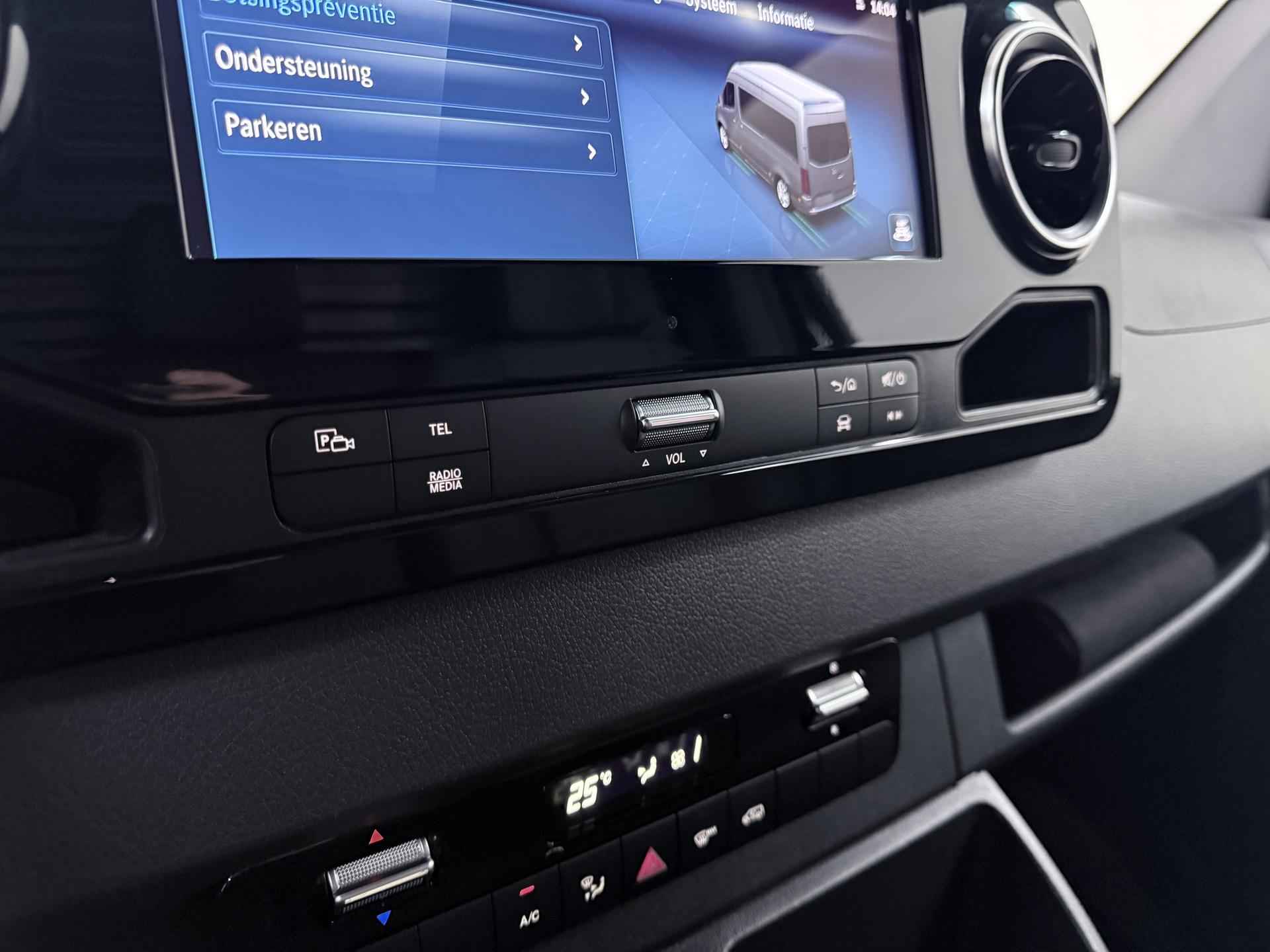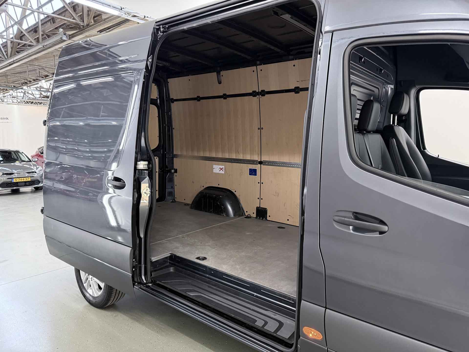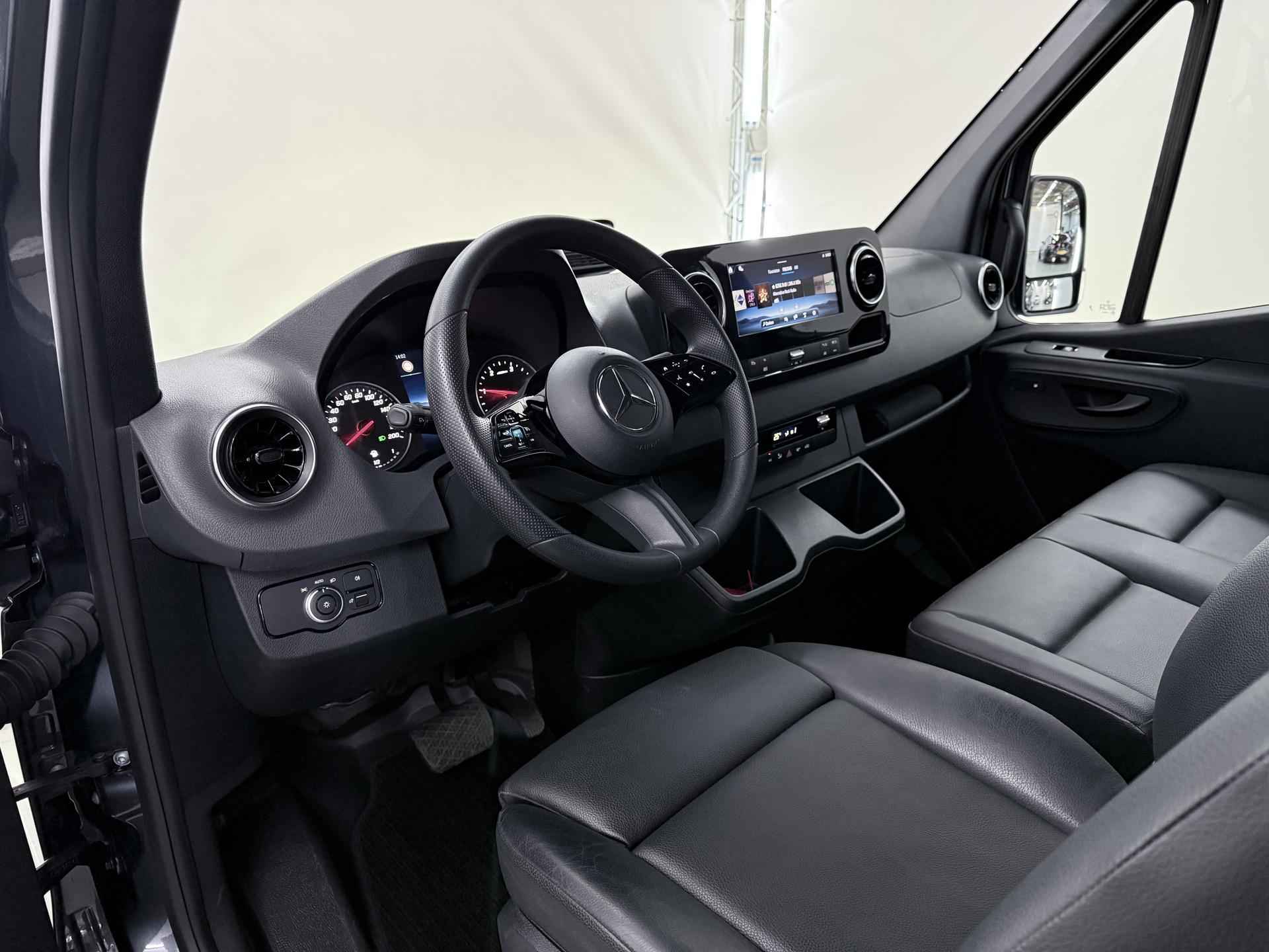 Robuust, luxe en hoogstaande technologie samengebracht in deze Mercedes-Benz Sprinter, een weerspiegeling van de excellente kwaliteit van Duitse automerken. De auto heeft een opmerkelijk lage kilometerstand van slechts 15980 De aandrijving van deze Mercedes-Benz wordt verzorgd door een viercilinder dieselmotor en een automatische transmissie. 's Winters op pad gaan kan een behoorlijke uitdaging zijn. Daarom is deze Mercedes-Benz Sprinter voorzien van weldadige verwarmbare voorstoelen. Een goede zithouding is wel zo prettig. Daarom is deze auto voorzien van ergonomisch comfort stoelen. De schuifdeur zorgt voor een grote deuropening waardoor niet alleen in- en uitstappen gemakkelijker wordt, maar ook bijvoorbeeld het plaatsen van bagage of een kinderzitje. U wordt in deze auto ook getrakteerd op 17 inch lichtmetalen velgen, warmtewerend glas en verwarmde ruitensproeiers. Ook achter de auto geen verrassingen bij het inparkeren. Daarvoor zorgt de achteruitrijcamera. Handig en veilig: Connected Services. Alle vitale functies en data van de auto checkt u via de app op uw smartphone. De kans op een kop-staart botsing wordt sterk gereduceerd door het systeem van achteropkomend verkeer waarschuwing. Da's makkelijk: dankzij de ingebouwde WIFI-hotspot kan iedereen onderweg probleemloos online. Terwijl u stuurt, kunt u het audiosysteem bedienen met de knoppen onder uw vingertoppen. Natuurlijk behoren WIFI-hotspot, DAB ontvangst, regensensor, cruise control, airconditioning en buitentemperatuurmeter ook tot de uitrusting van deze complete auto. De nieuwste veiligheidssystemen komen in deze Mercedes-Benz Sprinter samen. Onbedoeld buiten de rijstrook raken wordt voorkomen door het Lane-keeping systeem. Het laatste wat u wilt is dat u achter het stuur indommelt. Om dat te voorkomen is deze auto uitgerust met vermoeidheidsherkenning. Ook helpen het dodehoekdetectie, hill hold functie en autonoom remsysteem, uw rit tot een veilige rit te maken. Heeft u interesse? Laat het ons dan zo snel mogelijk weten, dan kunnen we deze Mercedes-Benz voor een proefrit reserveren.