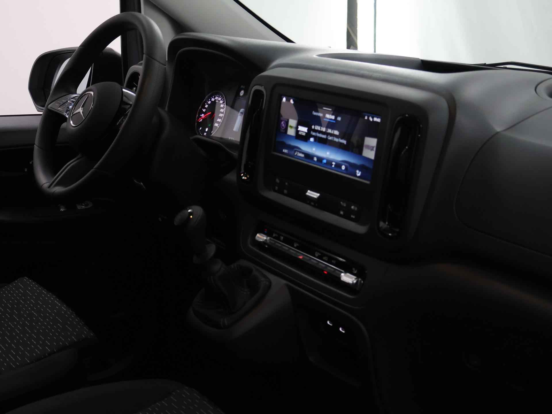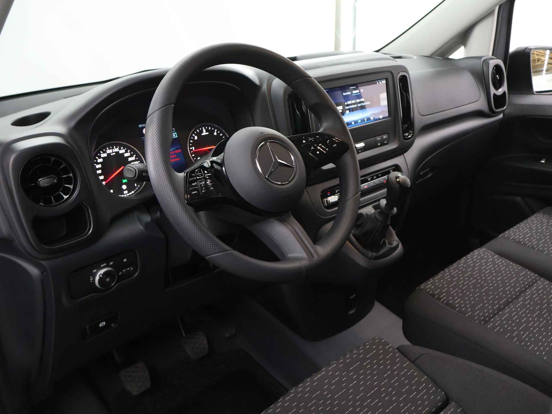 Een hoge mate van degelijkheid, uitstekende wegligging en veel comfort; het zijn unieke eigenschappen waarmee Duitse auto's zich onderscheiden. Dat geldt ook voor deze Mercedes-Benz Vito uit 2024 die 3227 kilometer op de teller heeft staan. Hij heeft een dieselmotor en een handgeschakelde versnellingsbak. In deze Mercedes-Benz profiteert u onder andere ook van: warmtewerend glas en in hoogte verstelbare passagiersstoel. Het digitale dashboard vertelt u alles wat u wilt weten voor een slimme, comfortabele en veilige rit. Comfortabel en veilig achteruitrijden gaat gemakkelijker dan ooit met behulp van de achteruitrijcamera. Vergeten af te sluiten? Bandenspanning onvoldoende? De speciale app geeft u direct een seintje met behulp van Connected Services. Mag de muziek wat zachter? U past het volume probleemloos aan met de audiobediening op het stuur. Met de DAB-ontvanger heeft u keuze uit talloze digitale radiozenders met de allerhoogste geluidskwaliteit. Natuurlijk behoren cruise control, airconditioning en verstelbaar stuur ook tot de uitrusting van deze complete auto. De Mercedes-Benz Vito is ook voorzien van ADAS. Deze Advanced Driver Assistence Systems fungeren als extra ogen en oren: ze houden voor u de weg in de gaten en grijpen in wanneer dat nodig is. Mooi binnen de lijnen van de rijstrook blijven? Het Lane-keeping systeem helpt altijd een handje. Vermoeidsheidsherkenning neemt tekenen van vermoeidheid waar bij de bestuurder. Het systeem voorkomt dat er daardoor ongelukken gebeuren. In een noodsituatie telt elke meter. Het brake assist systeem van deze auto zorgt ervoor dat uw remweg korter wordt. In deze Mercedes-Benz vinden we verder een dodehoekdetectie en bandenspanningcontrolesysteem. Wij kunnen ons goed voorstellen dat u deze Mercedes-Benz wilt aanschaffen. Wacht daar dan niet mee en reserveer hem nu direct. Dan nemen wij zo snel mogelijk contact met u op om de aflevering te bespreken.