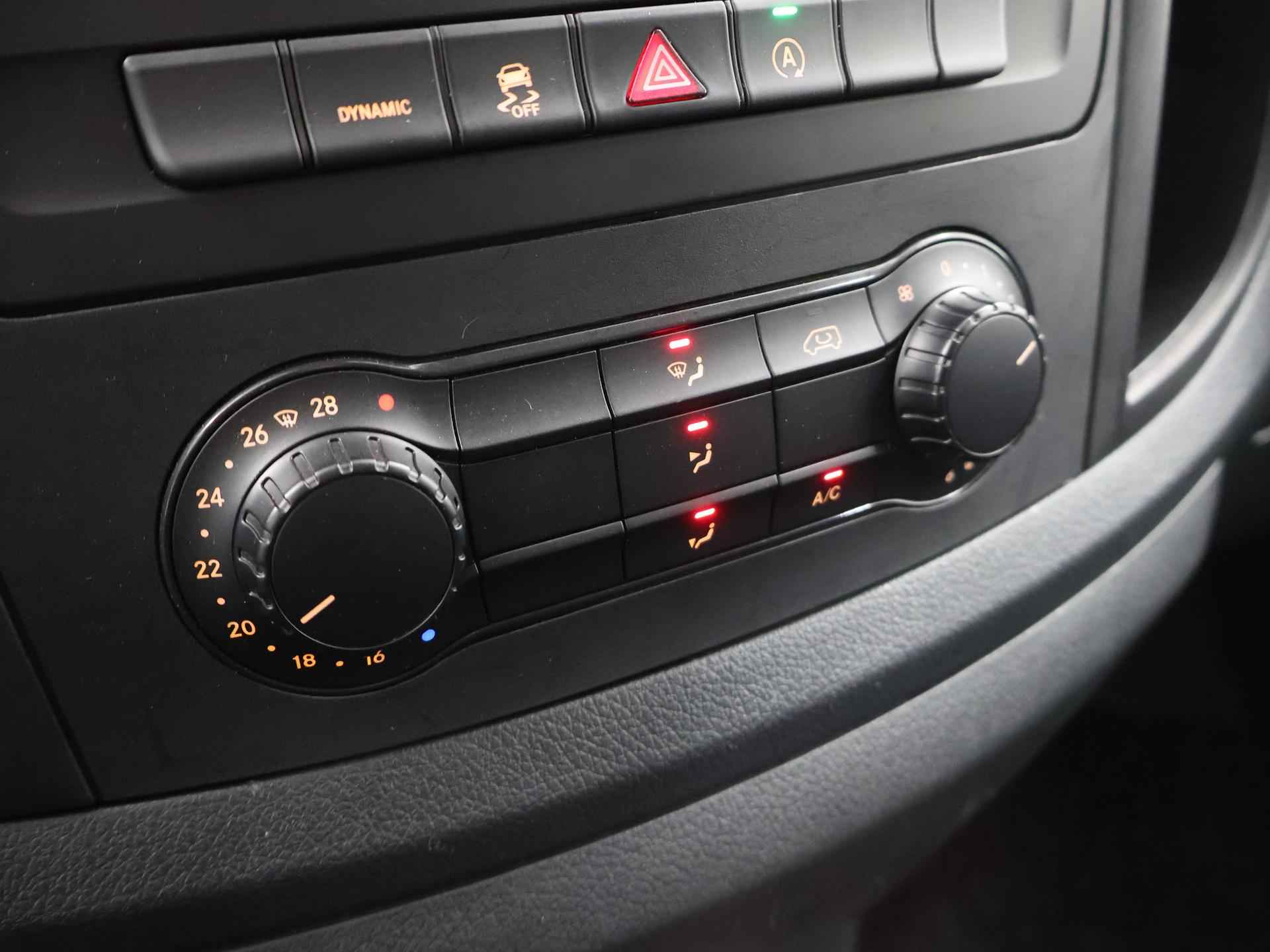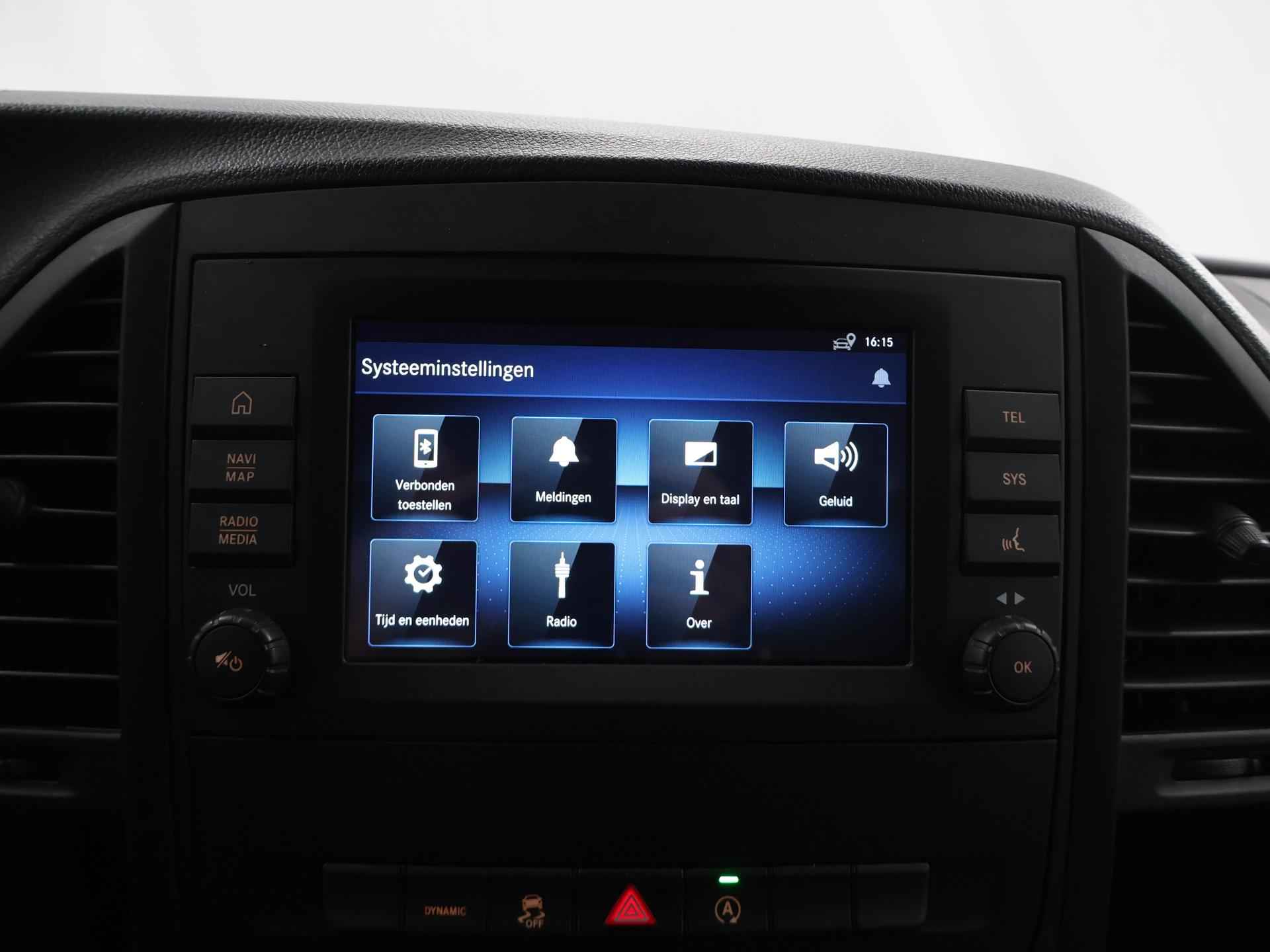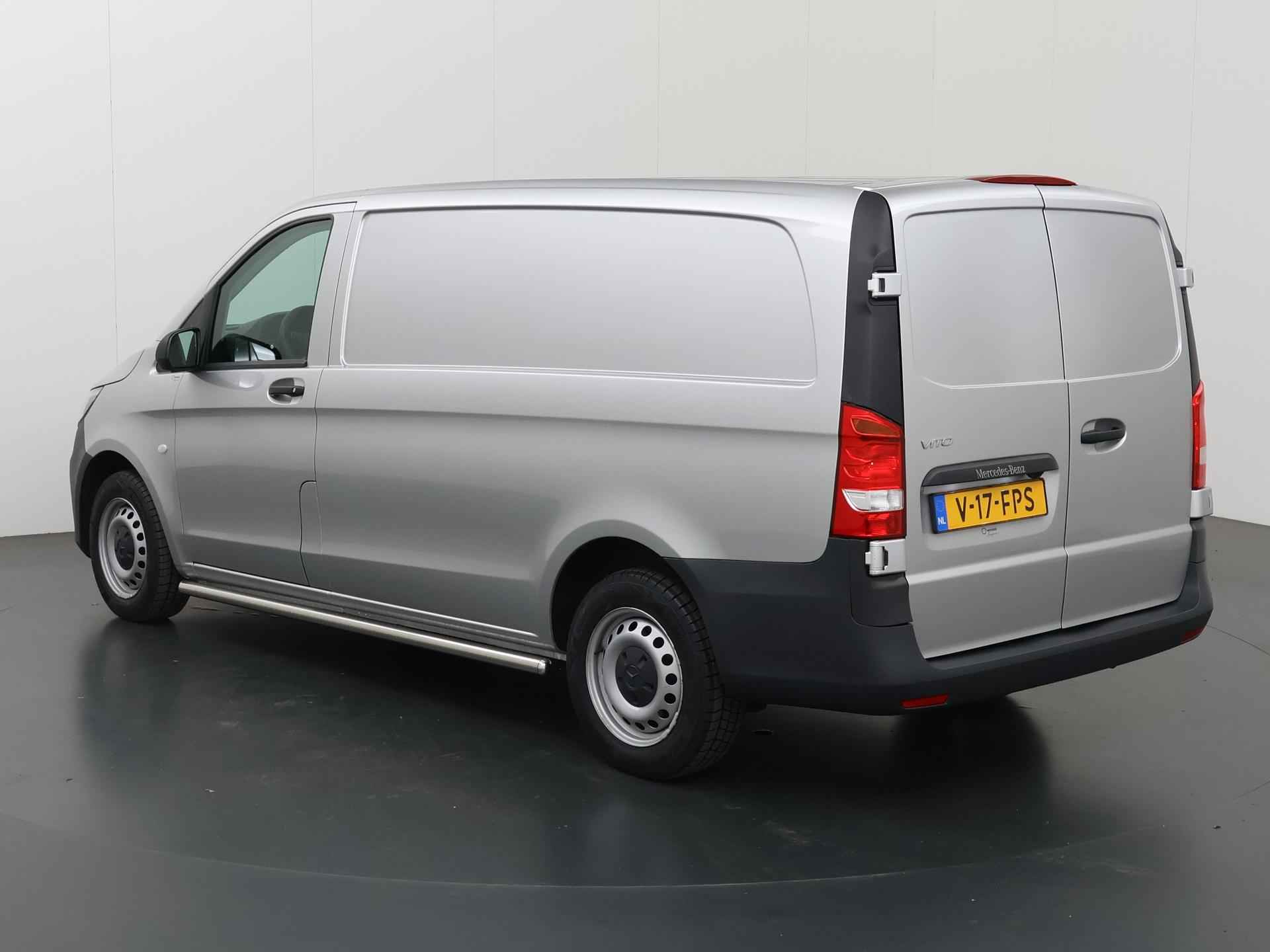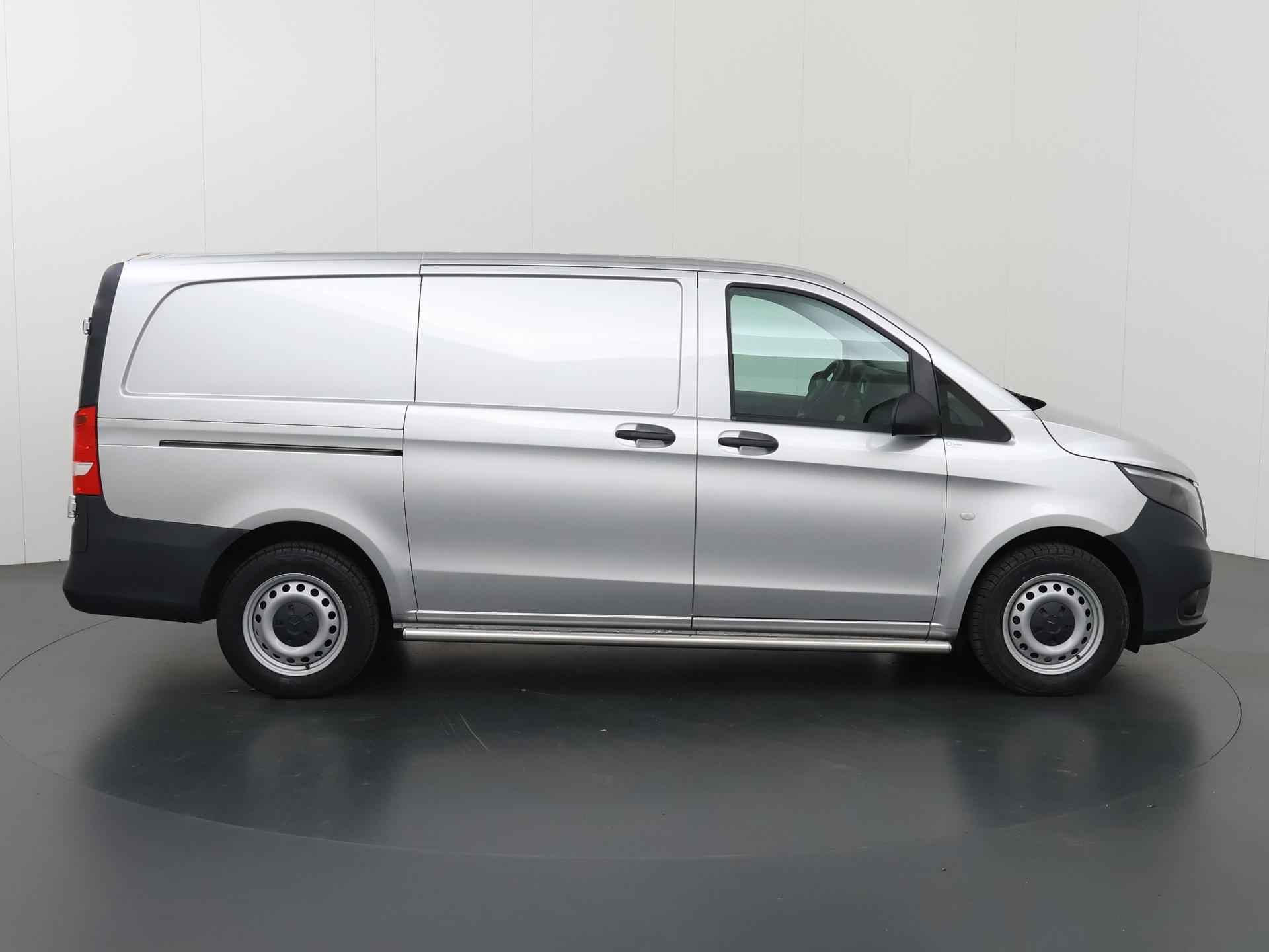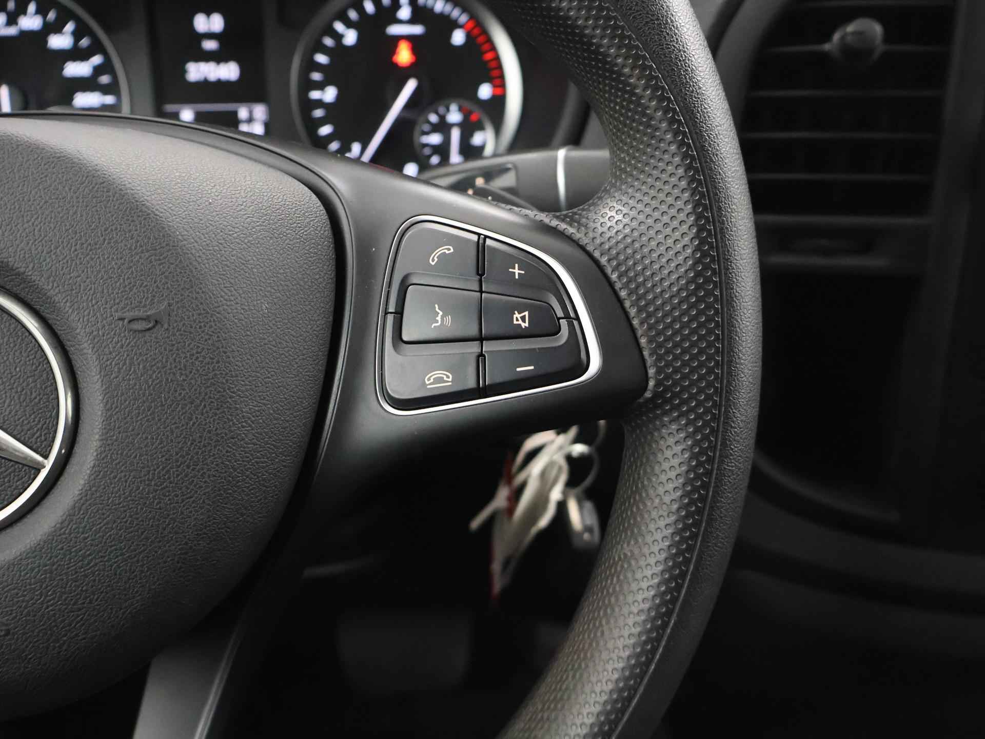 Zijn dynamische uiterlijk maakt al direct duidelijk wat voor rijervaring u van deze Mercedes-Benz Vito mag verwachten: pure sportiviteit. Met zijn dieselmotor en automatische transmissie is dit een prima auto voor nog vele kilometers. Prettig zitten maakt elke rit ontspannen dankzij de comfortstoelen. De schuifdeur bij het passagiersdeel is ook een voordeel: geen uitzwaaiende portieren en een royale instap. De uitmonstering van deze auto wordt gecompleteerd door onder meer warmtewerend glas en trailer assistent. Met behulp van de achteruitrijcamera kunt u zo strak inparkeren als u maar wilt! U kunt het audio-installatiesysteem bedienen met de knoppen op het stuur. Om de veiligheid onderweg te verhogen, heeft deze Mercedes-Benz zowel een automatisch inschakelbare verlichting als een regensensor aan boord, zodat hij zelf de verlichting en de ruitenwissers kan inschakelen. Er is ook cruise control aan boord, om met een constant tempo ontspannen en zuinig te rijden. Met één druk op de knop blaast de airconditioning een koele bries door het interieur. Deze auto is voorzien van centrale deurvergrendeling met afstandsbediening, boordcomputer en verstelbaar stuur. De Mercedes-Benz Vito is uw trouwe partner onderweg, want hij houdt continu voor u de situatie op en om de weg in de gaten. Volautomatische veiligheidssystemen kunnen daarbij ingrijpen om u voor gevaarlijke situaties te behoeden. De veiligheidssystemen in deze auto nemen het zelfs waar als de bestuurder tekenen van vermoeidheid vertoont, en waarschuwen dan met een duidelijk signaal. We laten u deze auto graag helemaal zien. Belt u ons voor een afspraak?