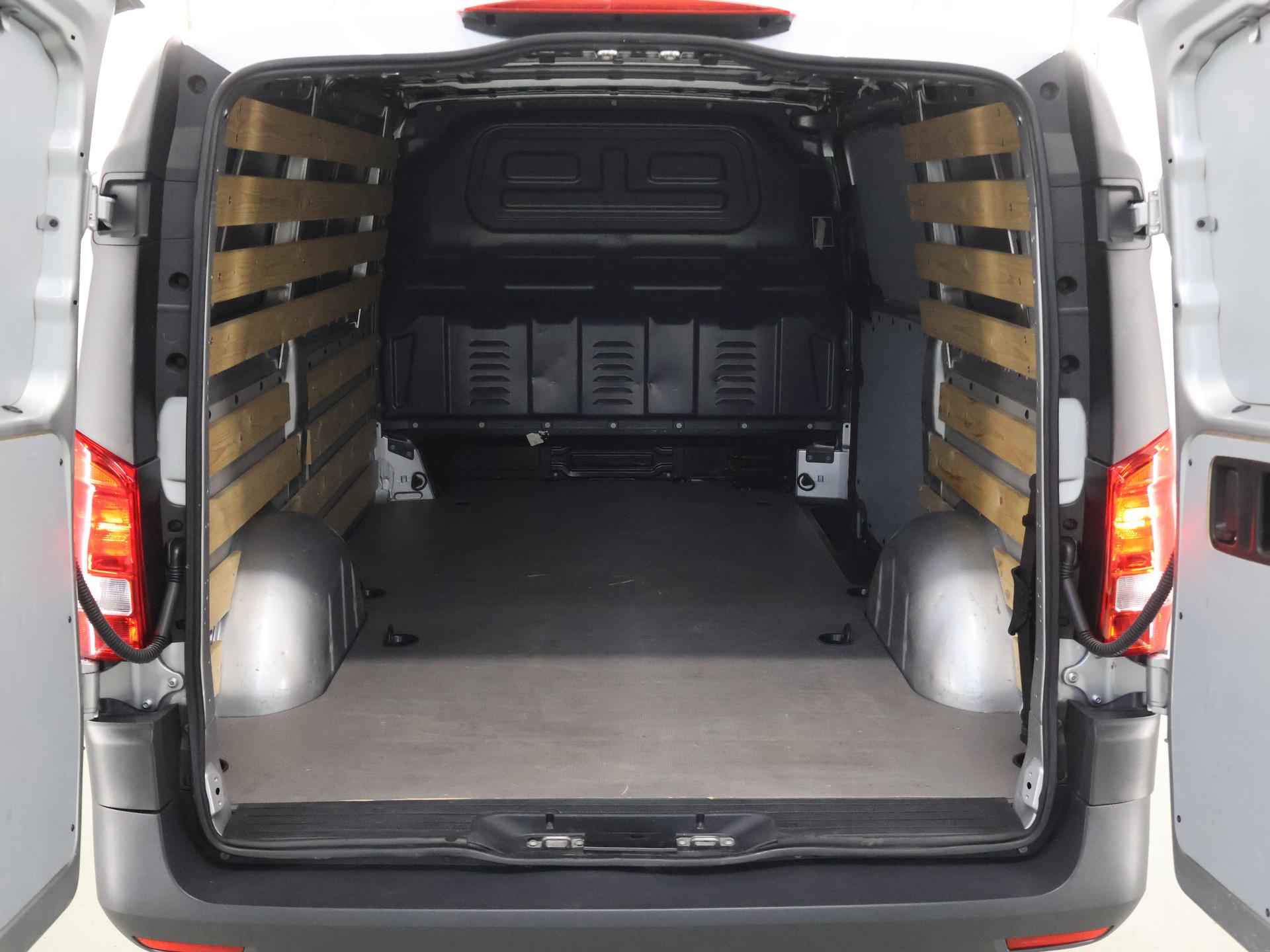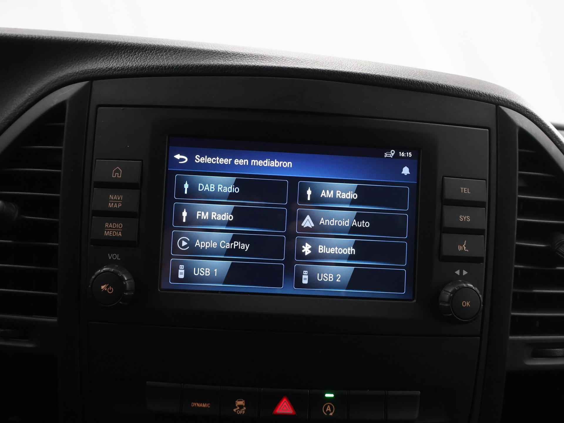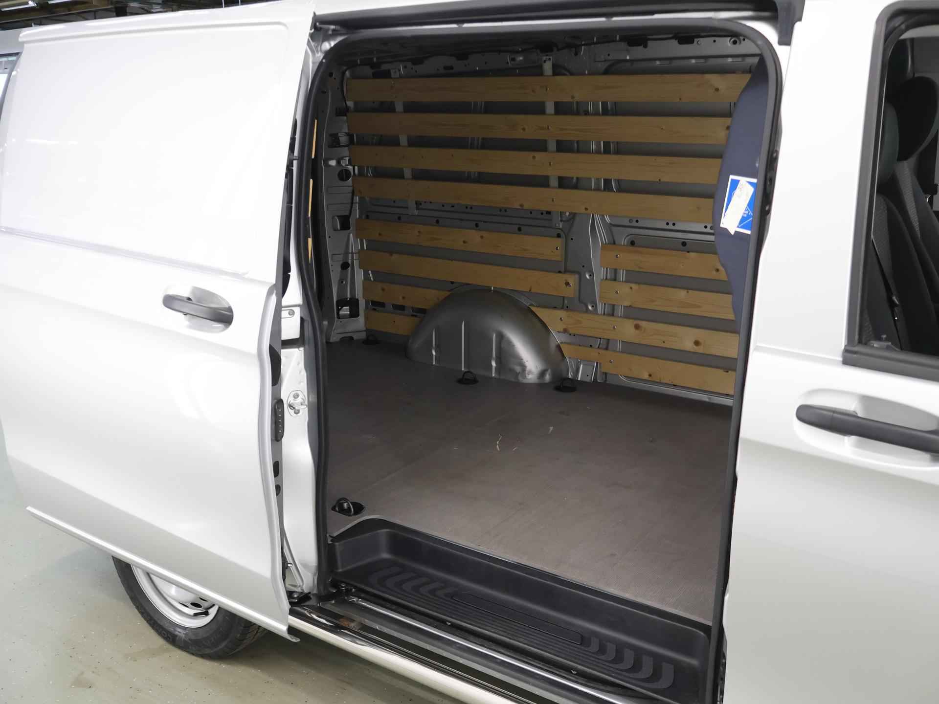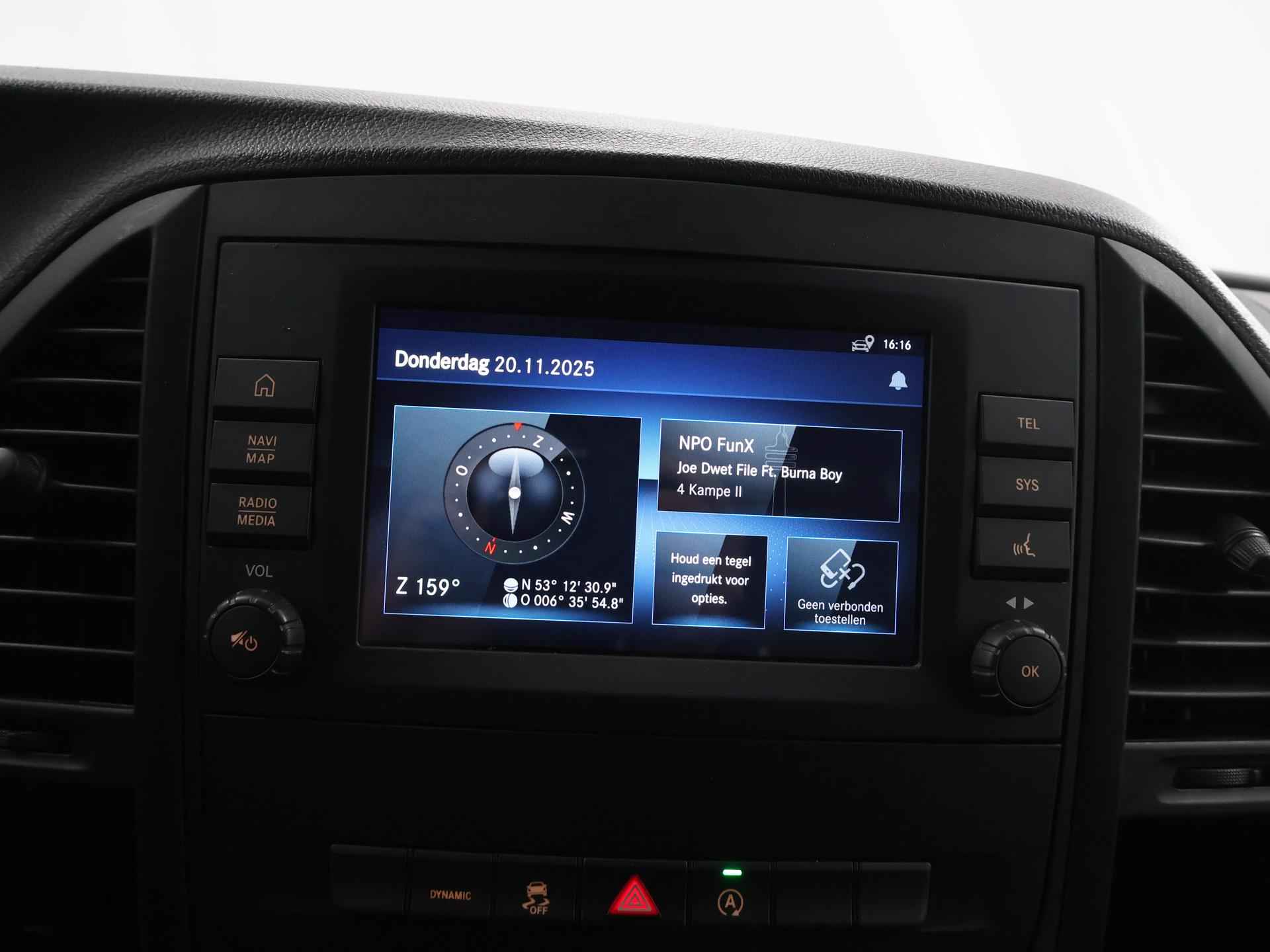 Zijn dynamische uiterlijk maakt al direct duidelijk wat voor rijervaring u van deze Mercedes-Benz Vito mag verwachten: pure sportiviteit. Met zijn dieselmotor en automatische transmissie is dit een prima auto voor nog vele kilometers. Prettig zitten maakt elke rit ontspannen dankzij de comfortstoelen. De schuifdeur bij het passagiersdeel is ook een voordeel: geen uitzwaaiende portieren en een royale instap. De uitmonstering van deze auto wordt gecompleteerd door onder meer warmtewerend glas en trailer assistent. Met behulp van de achteruitrijcamera kunt u zo strak inparkeren als u maar wilt! U kunt het audio-installatiesysteem bedienen met de knoppen op het stuur. Om de veiligheid onderweg te verhogen, heeft deze Mercedes-Benz zowel een automatisch inschakelbare verlichting als een regensensor aan boord, zodat hij zelf de verlichting en de ruitenwissers kan inschakelen. Er is ook cruise control aan boord, om met een constant tempo ontspannen en zuinig te rijden. Met één druk op de knop blaast de airconditioning een koele bries door het interieur. Deze auto is voorzien van centrale deurvergrendeling met afstandsbediening, boordcomputer en verstelbaar stuur. De Mercedes-Benz Vito is uw trouwe partner onderweg, want hij houdt continu voor u de situatie op en om de weg in de gaten. Volautomatische veiligheidssystemen kunnen daarbij ingrijpen om u voor gevaarlijke situaties te behoeden. De veiligheidssystemen in deze auto nemen het zelfs waar als de bestuurder tekenen van vermoeidheid vertoont, en waarschuwen dan met een duidelijk signaal. We laten u deze auto graag helemaal zien. Belt u ons voor een afspraak?