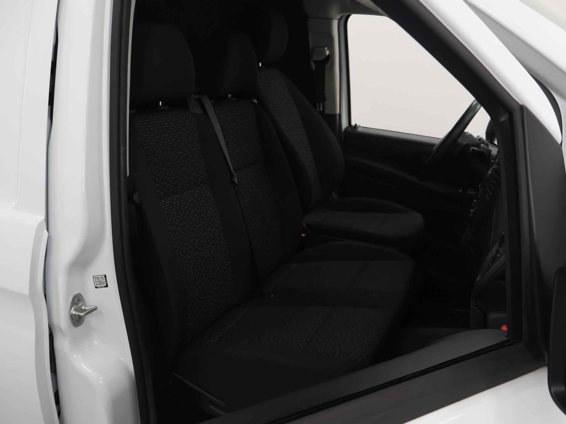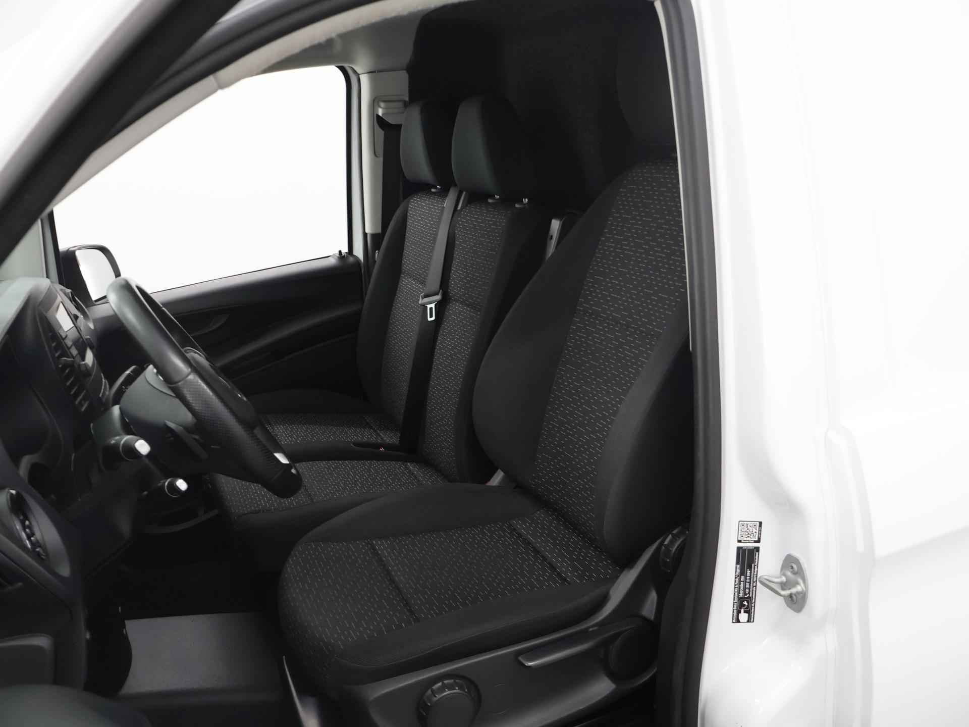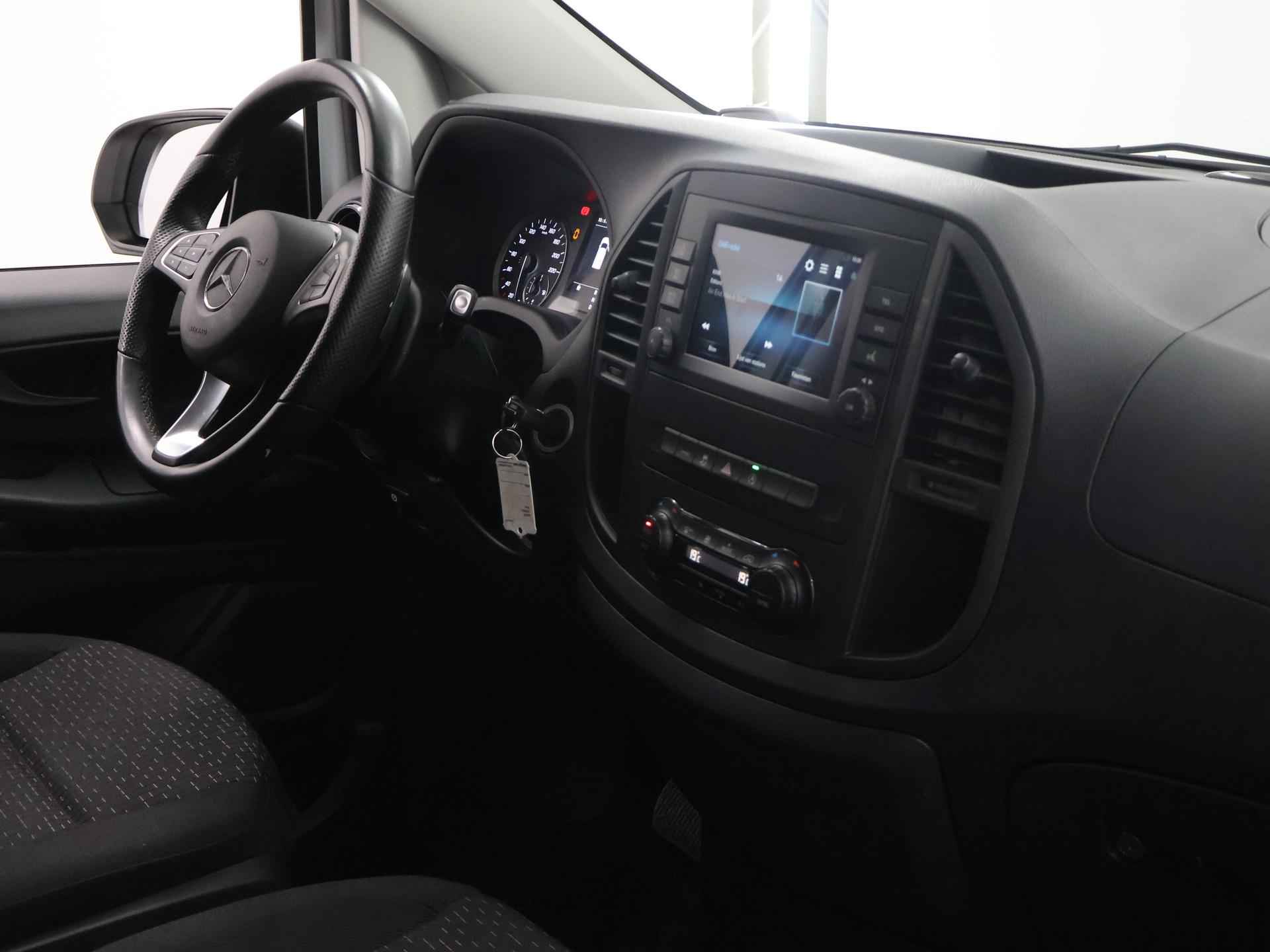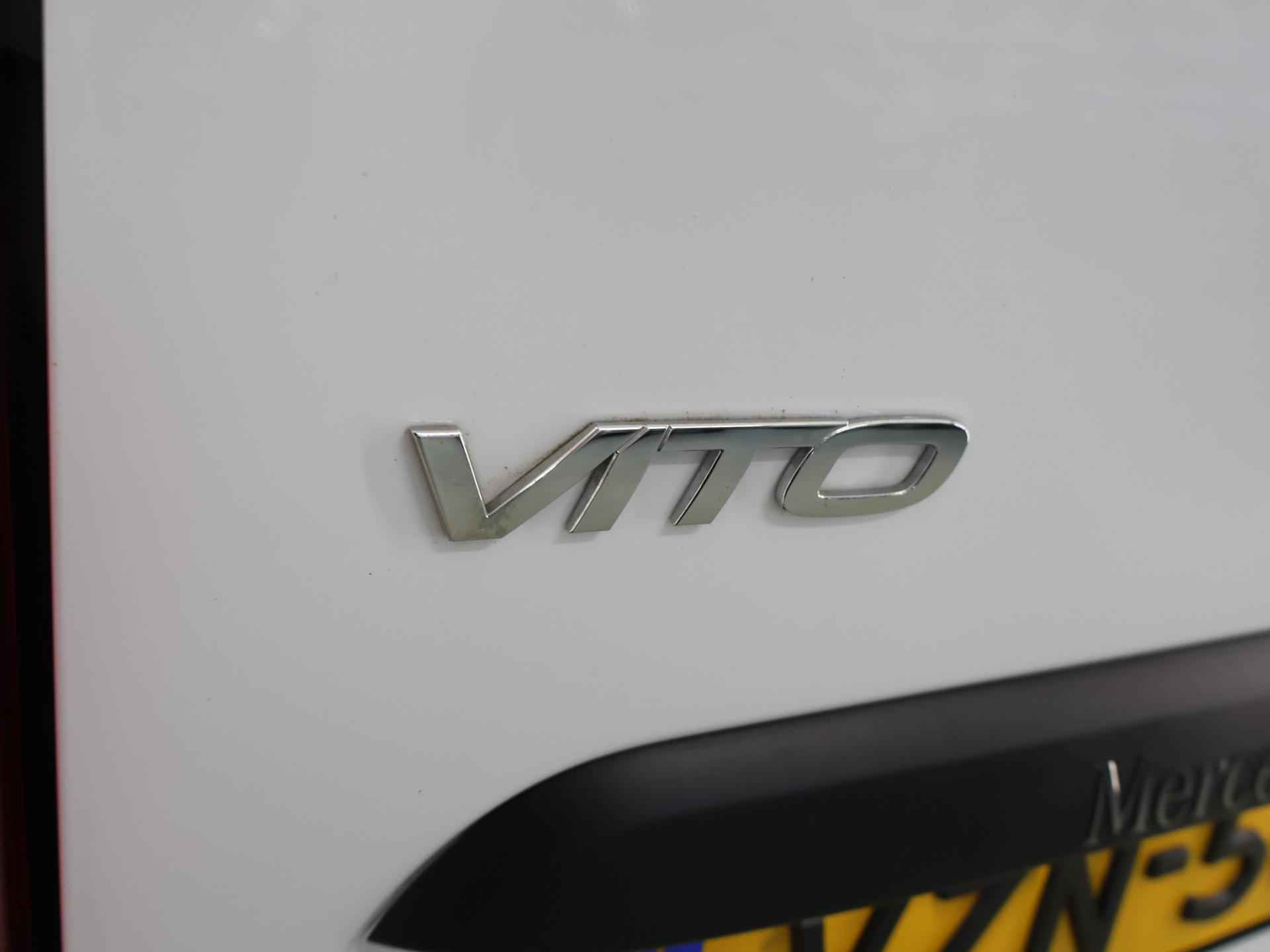 Als u gaat voor kwaliteit zonder compromis, dan is deze Mercedes-Benz Vito een auto voor u. Deze diesel heeft een automatische transmissie. De comfortstoelen zorgen voor een optimale zithouding onderweg. Ook bij een wat krappere parkeerplek stappen passagiers gemakkelijk in en uit via de schuifdeur. Bij de uitrusting van deze Mercedes-Benz horen onder meer warmtewerend glas en trailer assistent. Twijfelen hoeveel ruimte u achter de auto heeft? Met de achteruitrijcamera weet u altijd hoeveel centimeter! De auto is voorzien van een trekhaak en is een uitstekende caravantrekker. De automatische airconditioning zorgt voor een prettige binnentemperatuur. Harder, zachter, aan, uit, volgende track, nieuwe zender... alle audiofuncties zijn regelbaar via de audiobediening op het stuur. Achter het stuur van deze Mercedes-Benz bent u niet alleen. De auto kijkt als het ware met u mee tijdens de rit. De regensensor schakelt de ruitenwissers in als het nodig is en de automatisch inschakelbare verlichting doet de lichten voor u aan. En dan is deze auto ook nog eens voorzien van cruise control, lederen stuur, centrale deurvergrendeling met afstandsbediening en boordcomputer. Als bestuurder van deze Mercedes-Benz bent u nooit alleen. U wordt onderweg bijgestaan door technologische hulpmiddelen die samen met u de weg in de gaten houden. Als het nodig is, grijpen ze zelfs in, door te remmen of bij te sturen. Om te voorkomen dat u tijdens lange ritten achter het stuur in slaap valt, is deze auto voorzien van vermoeidheidsherkenning. Probeer deze auto uit en maak een proefrit. We zetten 'm graag voor u klaar!