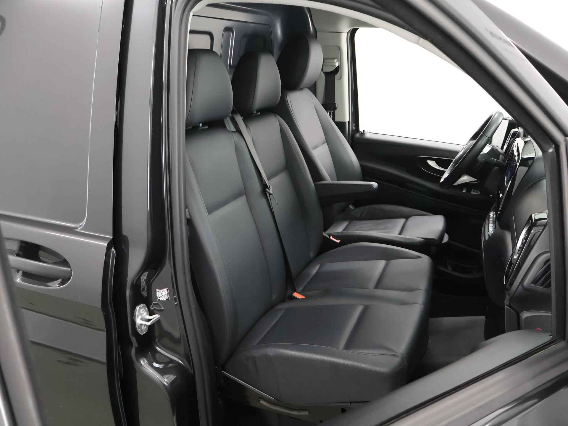 Als je motto is 'The best or nothing', laat je zien dat je ambities hebt. Maar dat wisten we van Mercedes al heel lang. Wordt dit uw eerste Mercedes of de volgende in een lange rij? In beide gevallen heeft u helemaal gelijk. De auto heeft een opmerkelijk lage kilometerstand van slechts 18602 Hij heeft een dieselmotor en een automatische transmissie. In de verwarmbare voorstoelen zitten is elke keer een welkom gevoel. Zit u goed? Nou, zeker wel, met de comfortstoelen! In deze auto profiteert u onder andere ook van: 17 inch lichtmetalen velgen, warmtewerend glas, trailer assistent, LED-achterlichten, verstelbare lendensteunen en verwarmde ruitensproeiers. In één oogopslag heeft u alle benodigde functies onderweg in beeld, dankzij het slim ingedeelde digitale dashboard. De auto is voorzien van een trekhaak en is een uitstekende caravantrekker. De speciale app verbindt met Connected Services, die de status van vitale functies bijhoudt en waarschuwt als u bijvoorbeeld moet tanken, de bandenspanning moet controleren of olie moet bijvullen. Internettoegang onderweg wordt geleverd door WiFi en muziek is draadloos te streamen naar het audiosysteem via smartphone connectiviteit. Relaxt rijden is meegeleverd in de vorm van cruise control. De uitrusting van deze Mercedes-Benz is met WIFI-hotspot, DAB ontvangst, parkeerassistent, airconditioning, automatisch dimmende binnenspiegel en verstelbaar stuur behoorlijk compleet. Het rijden met deze Mercedes-Benz wordt nog meer ontspannen dankzij de innovatieve technieken die onderweg over uw veiligheid waken. Het Lane-keeping systeem registreert permanent of u binnen de lijnen van de rijstrook blijft; dwaalt u onbedoeld af, dan waarschuwt het systeem en corrigeert de koers. Een belangrijk veiligheidssysteem in deze auto is de vermoeidheidsherkenning, die u een duidelijk signaal geeft wanneer u achter het stuur in slaap dreigt te vallen. Bij een gevaarlijke situatie is remmen essentieel. De Brake Assist haalt het maximum uit de remcapaciteiten van deze Mercedes-Benz Vito. In deze Mercedes-Benz vinden we verder een dodehoekdetectie en bandenspanningcontrolesysteem. Indien u interesse heeft in deze Mercedes-Benz, zetten we hem graag klaar voor een proefrit. We horen graag van u, mailt of belt u ons meteen?