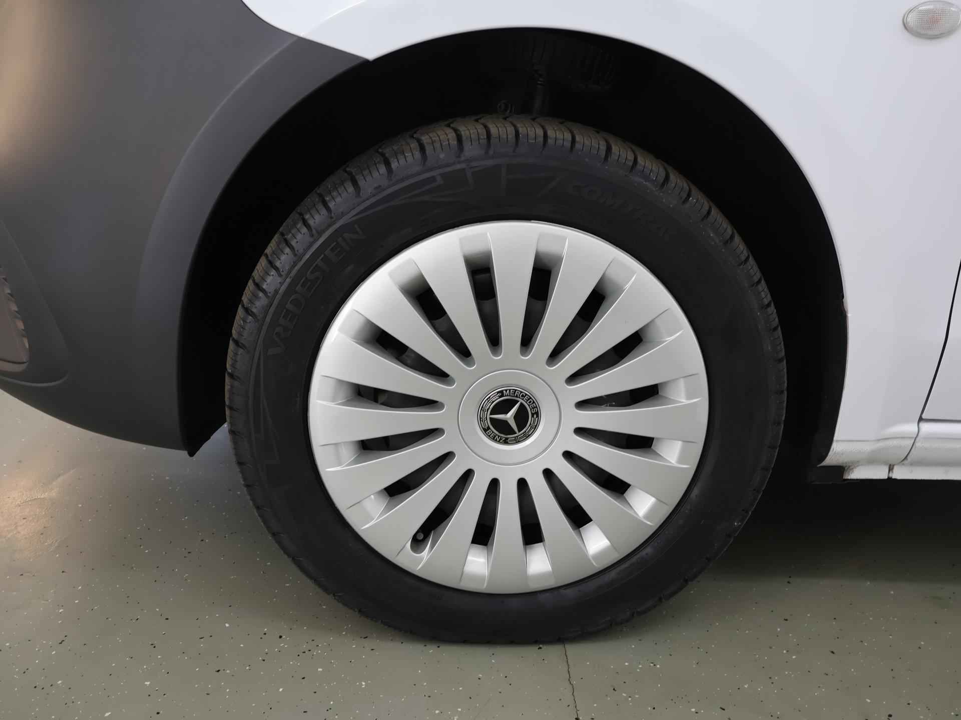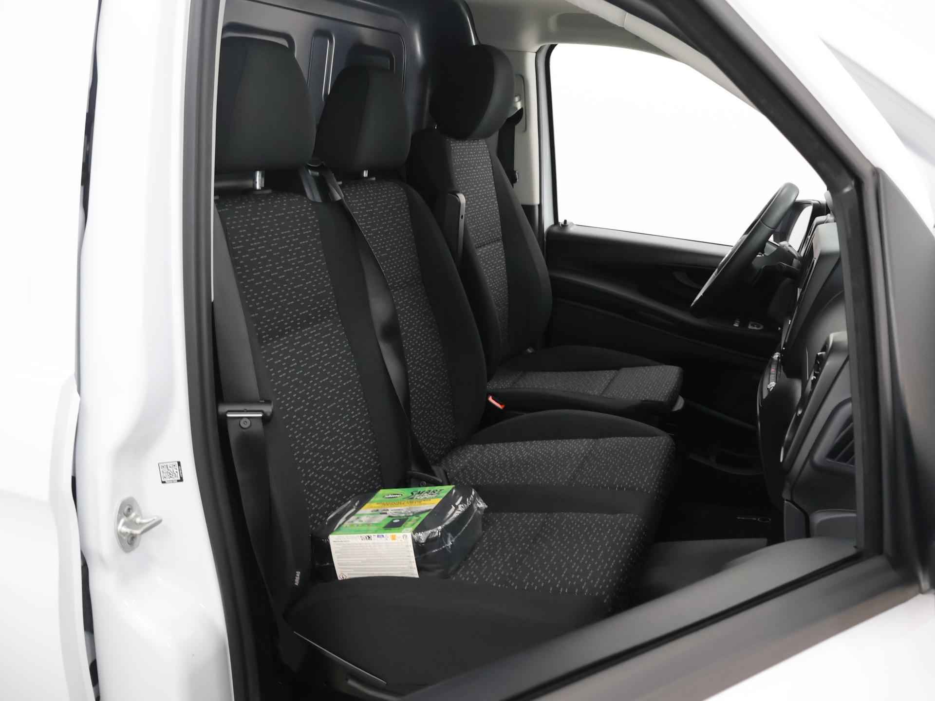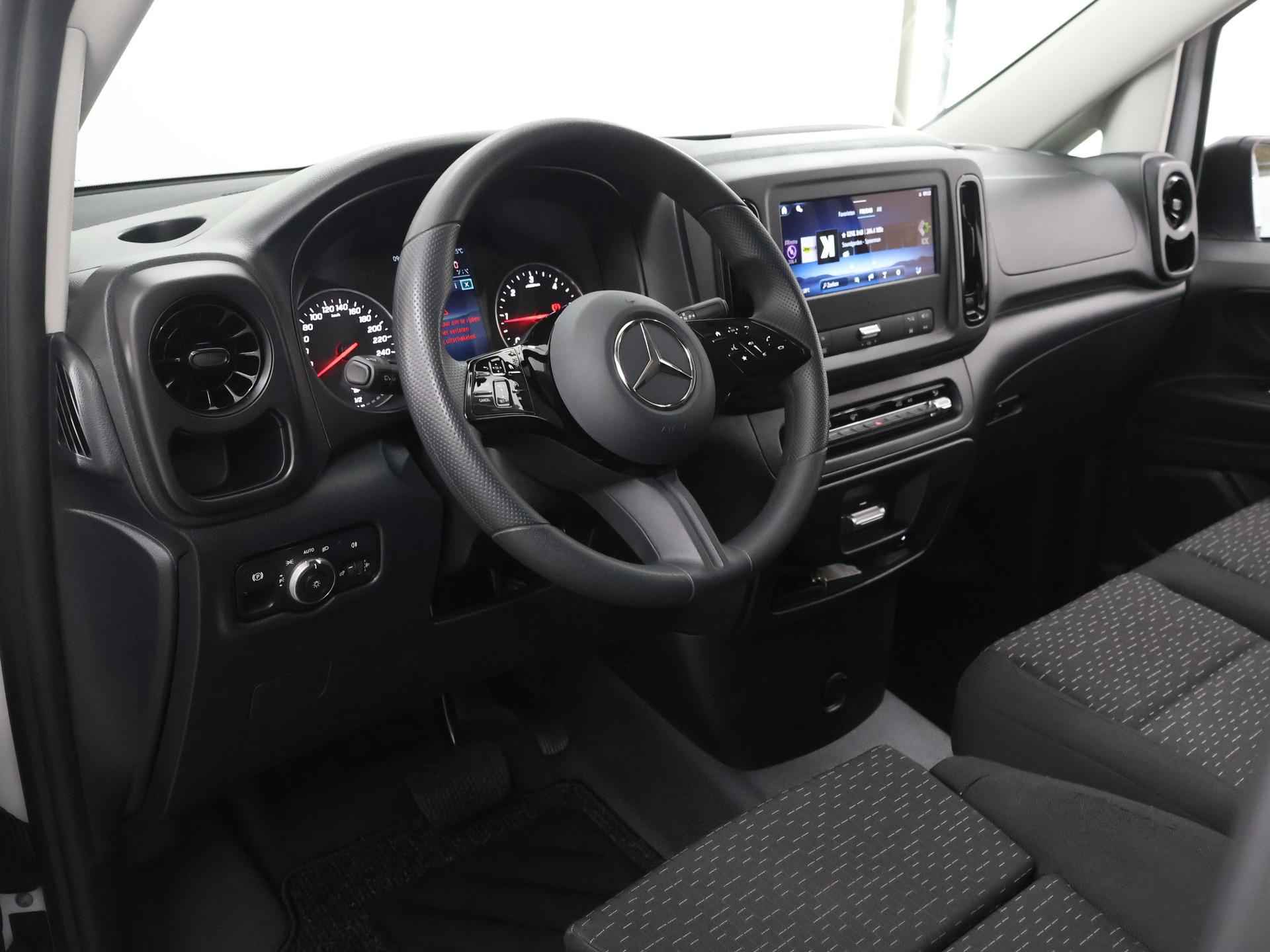 Het interieur van deze Mercedes-Benz Vito beschermt u als een veilige cocon. Het onderstel is ontworpen om de scherpste bochten en de slechtste wegen aan te kunnen en de motor reageert alert op ieder commando. In deze auto vindt u een dieselmotor en een automatische transmissie. Een goede zithouding is essentieel voor een fitte rit. Daarom is deze auto uitgerust met comfortstoelen. In deze Mercedes-Benz profiteert u onder andere ook van: warmtewerend glas en verstelbare lendensteunen. Natuurlijk brengt het digitale dashboard alle ritinformatie perfect in beeld. Maar ook communicatie, navigatie en tal van andere functies zijn permanent te volgen. Geen nekkramp of spiegelwerk meer bij het achteruitrijden: de achteruitrijcamera kijkt en ziet alles! Met Connected Services wordt iedere rit nóg veiliger. Prettig, altijd weten waar je moet zijn en hoe lang de rit nog duurt met het navigatiesysteem. Overal een snelle internetverbinding: de ingebouwde WIFI-hotspot staat tot uw beschikking. Extra opties op deze auto zijn: WIFI-hotspot, DAB ontvangst, cruise control, airconditioning en verstelbaar stuur. In deze auto zijn verschillende technologieën aanwezig die voor u het verkeer en de omgeving in de gaten houden en die desnoods ook kunnen remmen of bijsturen. Belangrijk voor uw veiligheid en die van uw passagiers is de verkeersbord-detectie in deze auto. Een camera houdt de juiste koers binnen de rijstrook in de gaten en het Lane-keeping systeem corrigeert bij afwijkingen. Vermoeidheidsherkenning is een systeem dat met verschillende sensoren tekenen van vermoeidheid bij de chauffeur waarneemt. Deze krijgt tijdig een waarschuwing, wat ongelukken kan voorkomen. Met voorzieningen als dodehoekdetectie, brake assist en bandenspanningcontrolesysteem, bent u altijd veilig onderweg. Een proefrit levert het bewijs. Neem contact op en we maken een afspraak!