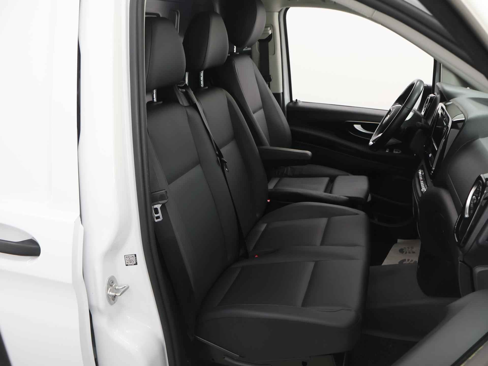 Liefhebbers van Duitse auto's zijn enorm merkentrouw. Waarom zou je ook iets aan het toeval overlaten als je ook voor Sicher kunt kiezen? Hij heeft een dieselmotor en een automatische transmissie. Tijdens gure dagen is het prettig zitten in de verwarmbare voorstoelen. De comfortstoelen van deze Mercedes-Benz Vito staan bekend om hun goede zithouding. Bij de zeer complete uitrusting van deze auto behoren ook 17 inch lichtmetalen velgen, warmtewerend glas, trailer assistent, LED-achterlichten, verstelbare lendensteunen en verwarmde ruitensproeiers. Rijfuncties worden glashelder en overzichtelijk weergegeven via het digitale dashboard. De auto is voorzien van een trekhaak en is een uitstekende caravantrekker. Navigatie, onderhoudsstatus, vergrendeling, audio... de mogelijkheden van remote services zijn haast oneindig. Ook deze auto laat zich bedienen en analyseren via uw smartphone! U kunt uw handen aan het stuur houden en uw ogen op de weg. Want het audiosysteem, met DAB-ontvangst, en het navigatiesysteem bedient u vanaf het stuurwiel. Zuinig en zeker zoeven? Dan is de cruise control ideaal! U bent in deze Mercedes-Benz ook voorzien van WIFI-hotspot, parkeerassistent, airconditioning, automatisch dimmende binnenspiegel en verstelbaar stuur. U geniet nog meer van het rijden met uw Mercedes-Benz omdat u wordt beschermd door intelligente veiligheidssystemen. De camera van de verkeersborddetectie herkent verschillende soorten verkeersborden en toont deze op het dashboard. Ongemerkt buiten de rijstrook raken? Nee hoor, het Lane-keeping systeem waarschuwt en corrigeert. Bij concentratieverlies en toenemende vermoeidheid van de bestuurder, geeft de auto een sterk signaal om u weer bij de les te houden. Hierdoor kunnen veel ongelukken voorkomen worden. Bovenop deze veiligheidsfeatures heeft deze Mercedes-Benz bovendien dodehoekdetectie, brake assist en bandenspanningcontrolesysteem. Wilt u meer weten over deze auto? Neem dan contact met ons op voor een proefrit. Wij zijn Wensink, aangenaam. In onze Wensink Winkels bent u altijd welkom. U kunt bij ons elke dag kiezen uit nieuwe auto's en meer dan 1.500 kwaliteits-occasions tot 8 jaar die stuk voor stuk professioneel zijn geselecteerd, gecheckt en klaargemaakt door onze vakmensen. Echt aangenaam rijden noemen we dat. In onze winkel vindt u alles wat u nodig heeft om zorgeloos te rijden; verzekering, financiering, leasing, onderhoudsabonnementen, laadpaaloplossingen, en meer bij ons vindt u het. En het mooiste? U bepaalt zelf hoe en wanneer u uw auto wil kopen, volledig online en afgeleverd bij u thuis of via één van onze winkels dicht bij u in de buurt. U bepaalt.